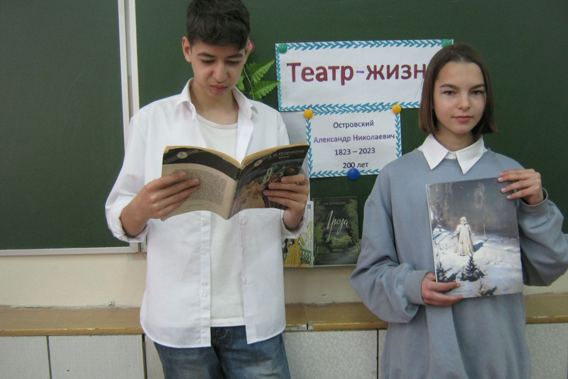 5 апреля сотрудники библиотеки № 15 провели литературный час «Жизнь и театр» для учащихся 7 «Б» класса школы № 54, Вектор. Мероприятие приурочено к юбилейной дате — 200-летия со дня рождения Александра Николаевича Островского.