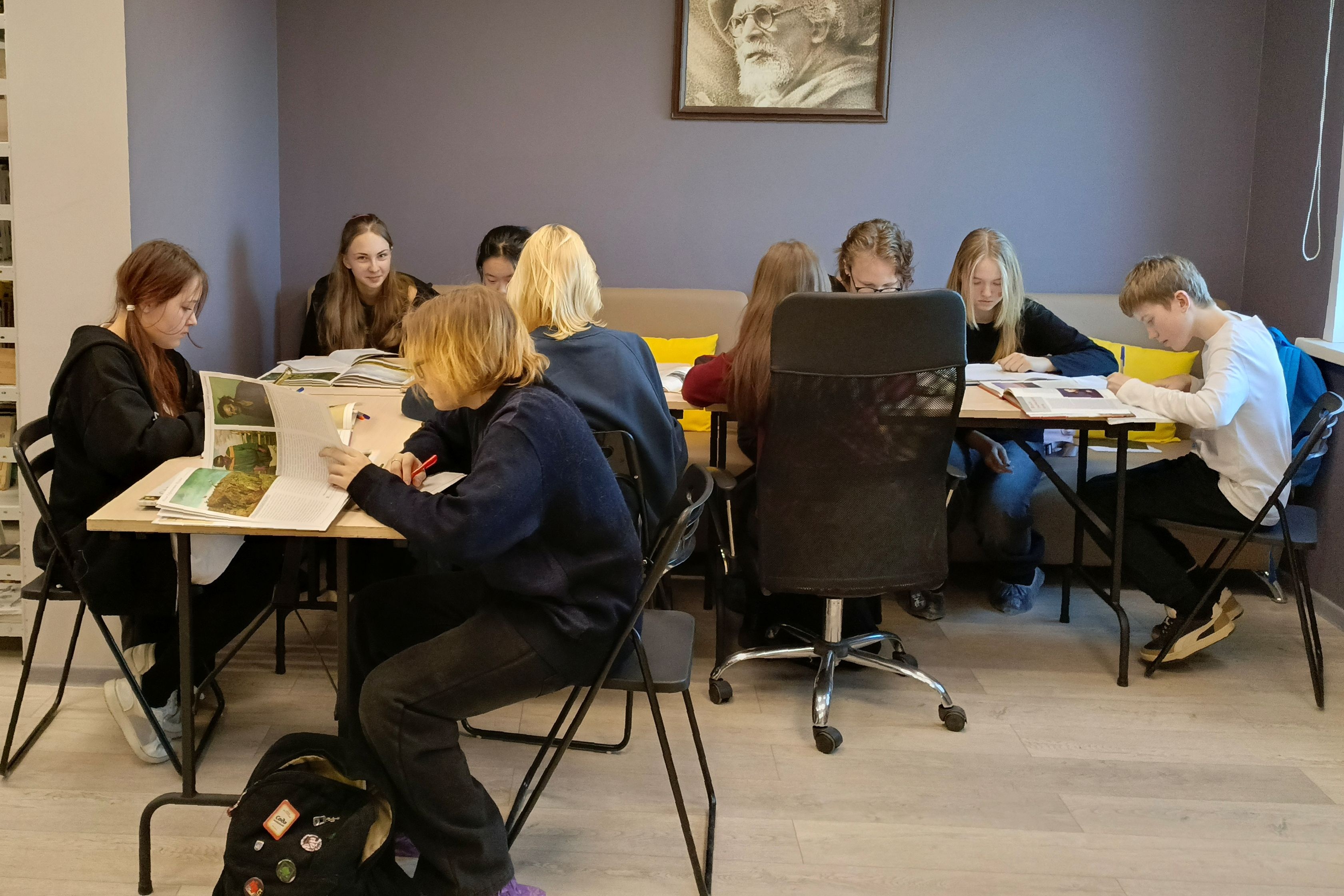 Для более удобной работы библиотекари подобрали книги и фотоальбомы репродукций известных художников. Ребята изучали биографии и стили таких русских живописцев как Алексей Саврасов, Илья Репин, Иван Шишкин и другими. Сотрудники библиотеки рассказали о проходящих выставках в художественных галереях города и предложили альбомы, составленные по экспонатам известных галерей, например, Третьяковской. Юные художники поделились своим впечатлением о посещении экспозиции, привезенной из разных музеев России Василия Поленова, одного из блестящих мастеров кисти.