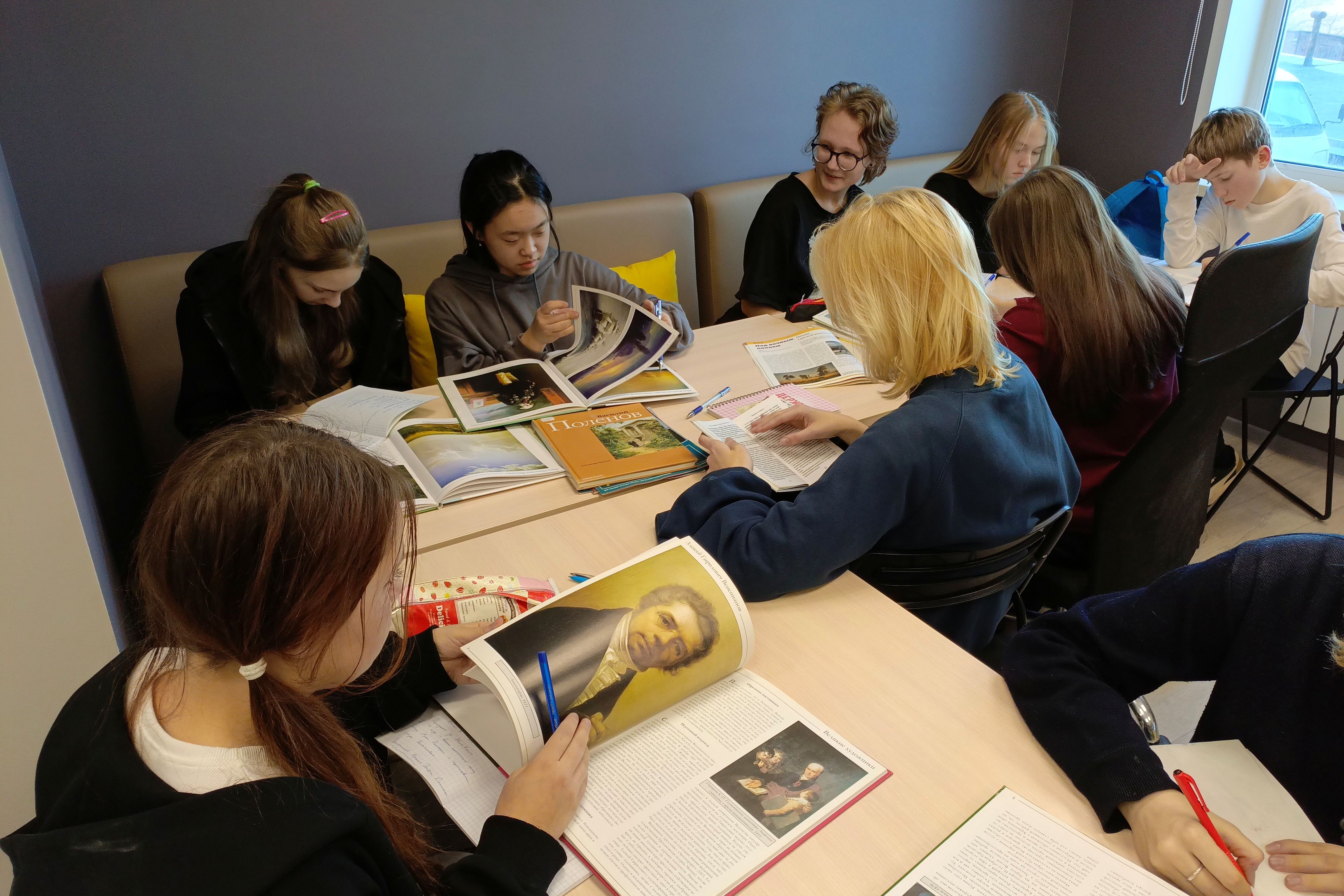 Для более удобной работы библиотекари подобрали книги и фотоальбомы репродукций известных художников. Ребята изучали биографии и стили таких русских живописцев как Алексей Саврасов, Илья Репин, Иван Шишкин и другими. Сотрудники библиотеки рассказали о проходящих выставках в художественных галереях города и предложили альбомы, составленные по экспонатам известных галерей, например, Третьяковской. Юные художники поделились своим впечатлением о посещении экспозиции, привезенной из разных музеев России Василия Поленова, одного из блестящих мастеров кисти.