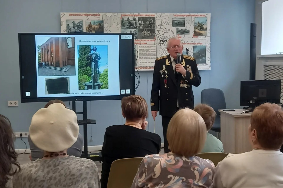 Анатолий Иванович Узаревич раскрыл перед слушателями ключевые даты истории города. С интересом участники встречи восприняли рассказ об истории освоения нынешней Калининградской области, об образовании и развитии Кенигсберга. В ходе Семилетней войны 1758–1762 г. Кенигсберг вошел в состав Российской империи, а его жители, включая философа Иммануила Канта, присягнули на верность императрице Елизавете Петровне. До 1762 года город принадлежал России, был центром образованного генерал-губернаторства Восточная Пруссия. Возвращён Пруссии по условиям заключённого с ней императором Петром III Петербургского мирного договора.
