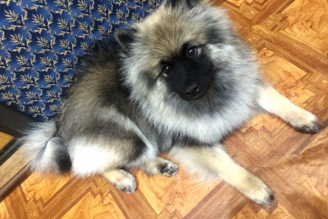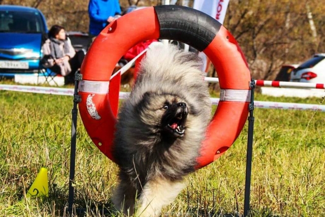 Пушистый комок породы кеесхонд/вольфшпиц решил, что он не просто собака-компаньон, а спортсмен, и что нечего лежать на диване, нас ждут великие дела.