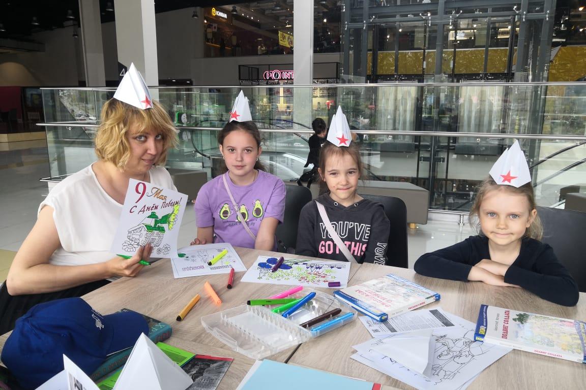 Здесь же библиотекари развернули мастер-классы, на которых дети своими руками, иногда с помощью родителей и библиотекарей делали поделки в технике оригами. Девочкам больше понравилось мастерить букет победителя, а мальчишки с удовольствием складывали пилотки с красной звездой. Также дети успешно справлялись с вопросами викторины по теме войны. Для раскрашивания ребята выбирали разные картинки: солдата-победителя, салют победы и другие.