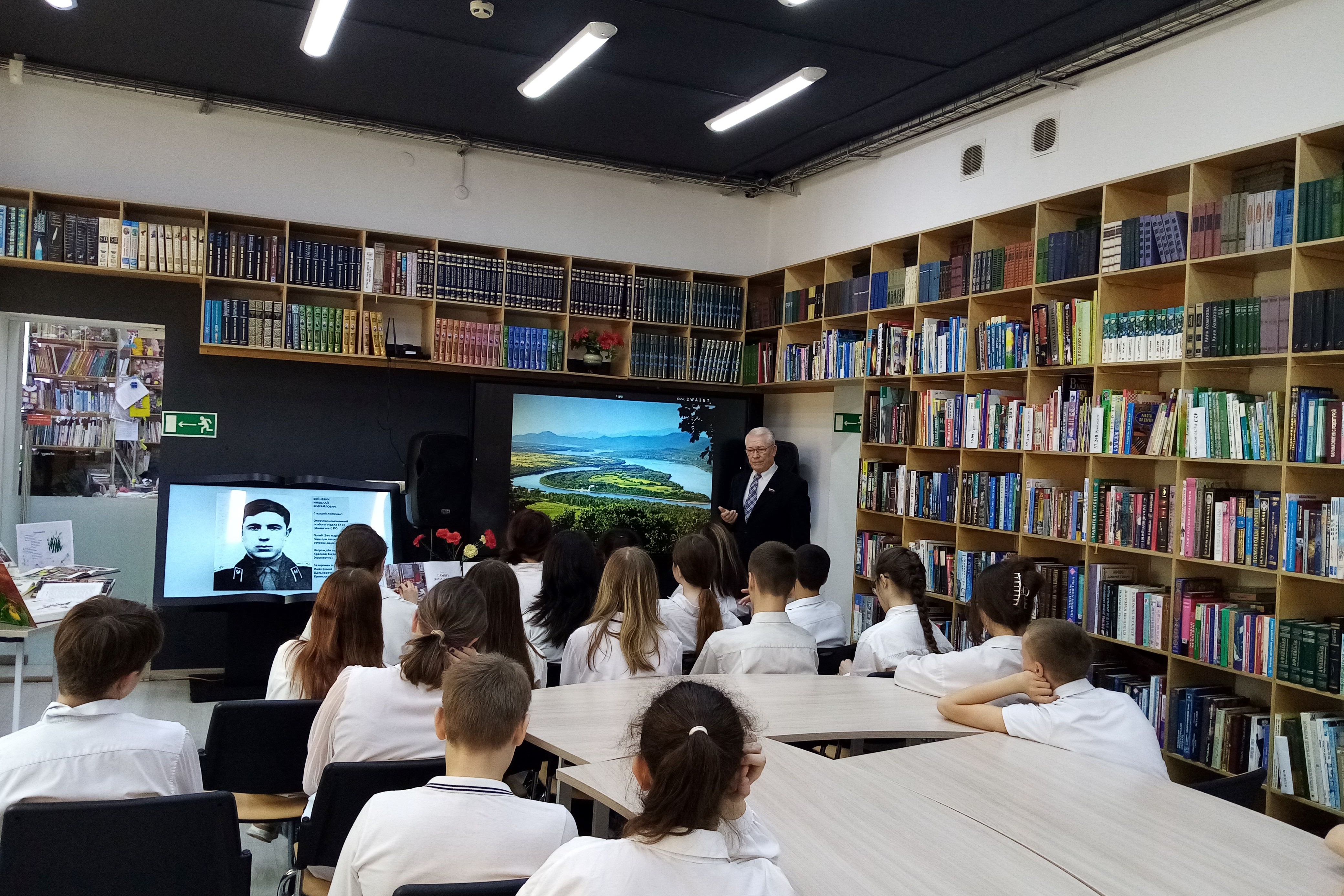 В рамках акции «Верни герою имя» для восьмиклассников Центра образования «Ступени» библиотека № 12 организовала час мужества «Носит улица имя героя». О старшем лейтенанте Николае Михайловиче Буйневиче, герое Даманских событий, рассказал школьникам Сидоров Николай Васильевич, писатель-краевед, подполковник.