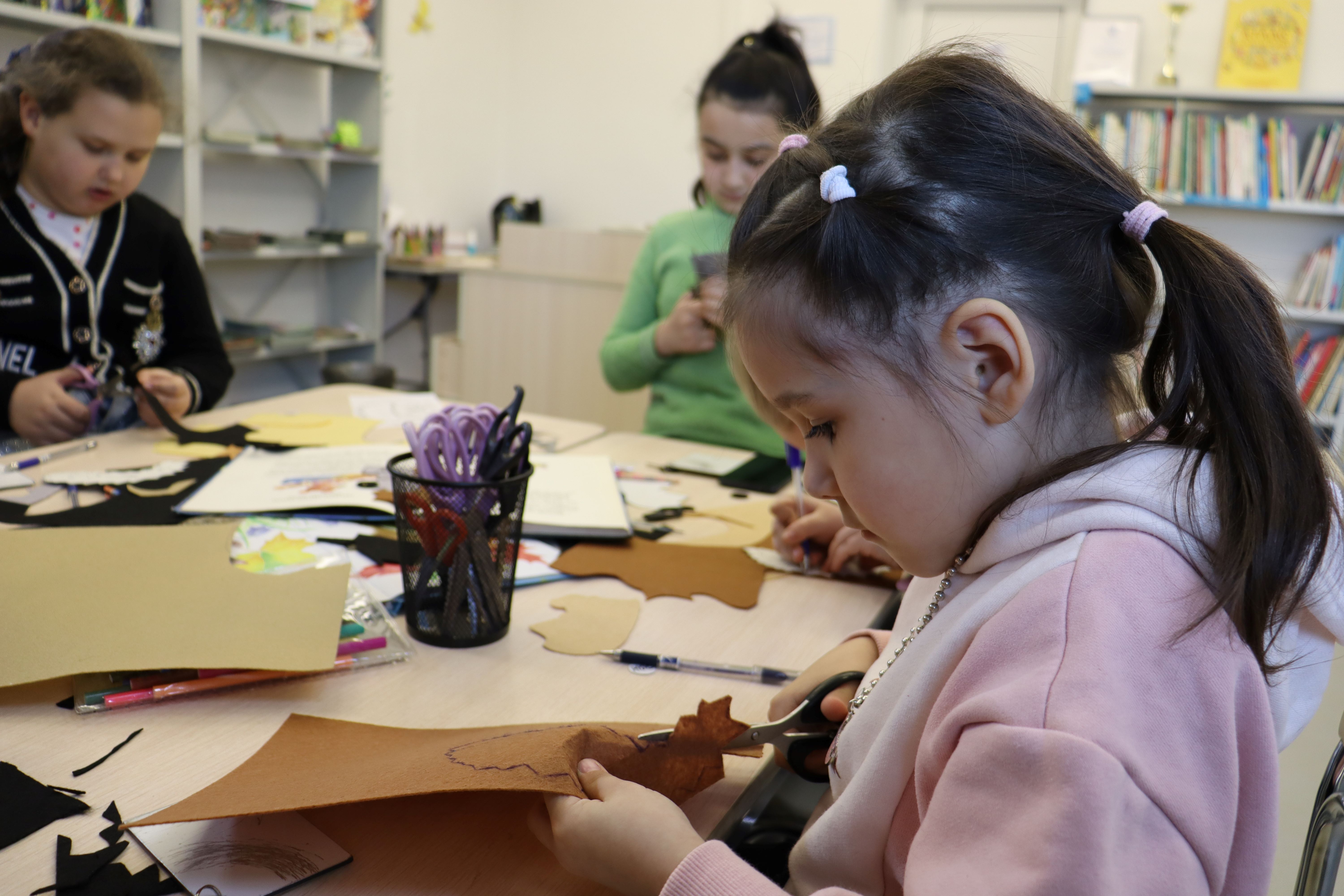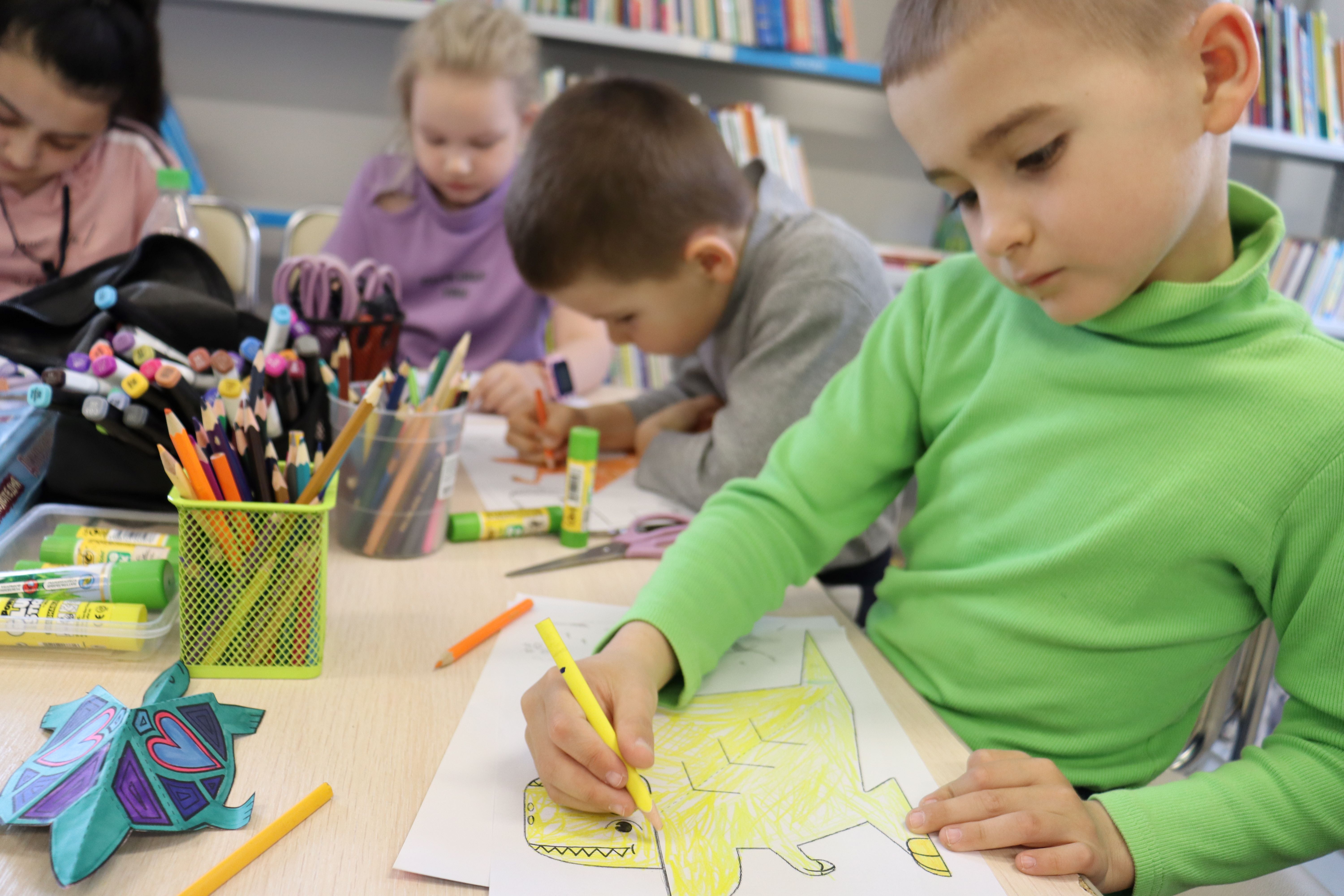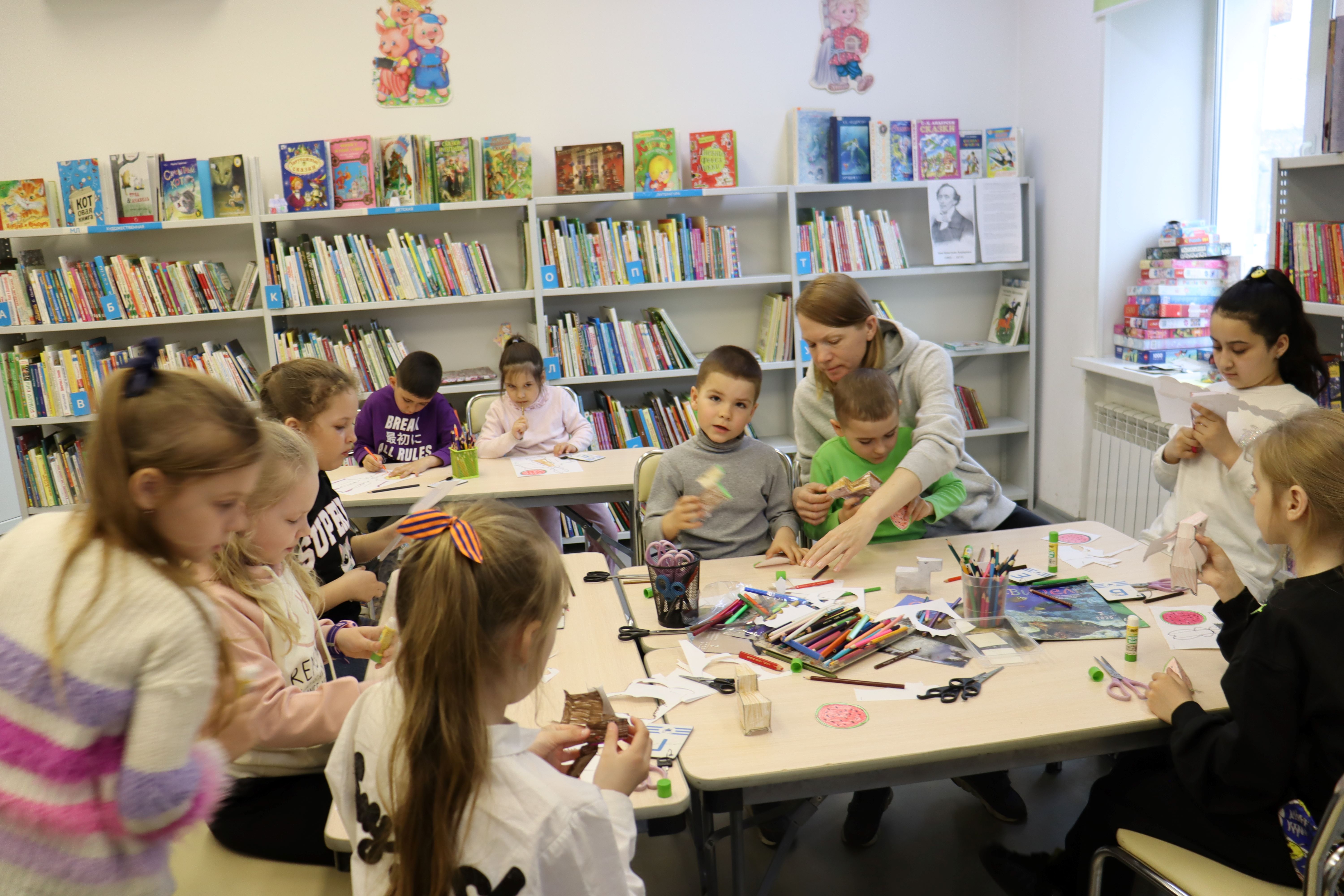 В апреле в библиотеке № 8 на Приморской продолжились занятия творческой мастерской, которая работает здесь в течение многих лет и привлекает внимание читателей детей. В течение месяца ребята на мастер-классах делали поделки из бумаги, объемные и яркие фигуры динозавров, капибар и черепах. Также своими руками мастерили из фетра пасхальные яйца, забавных ежей и обезьян, добавляя к поделкам элементы декора.