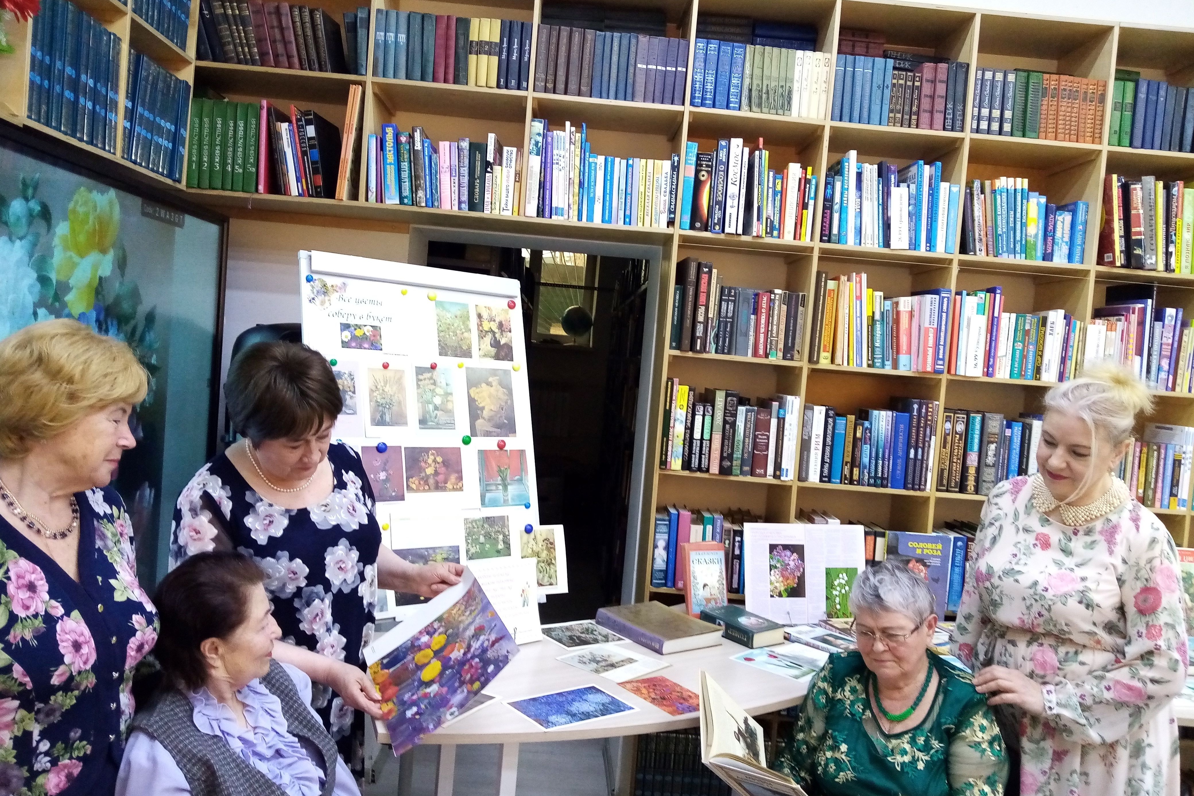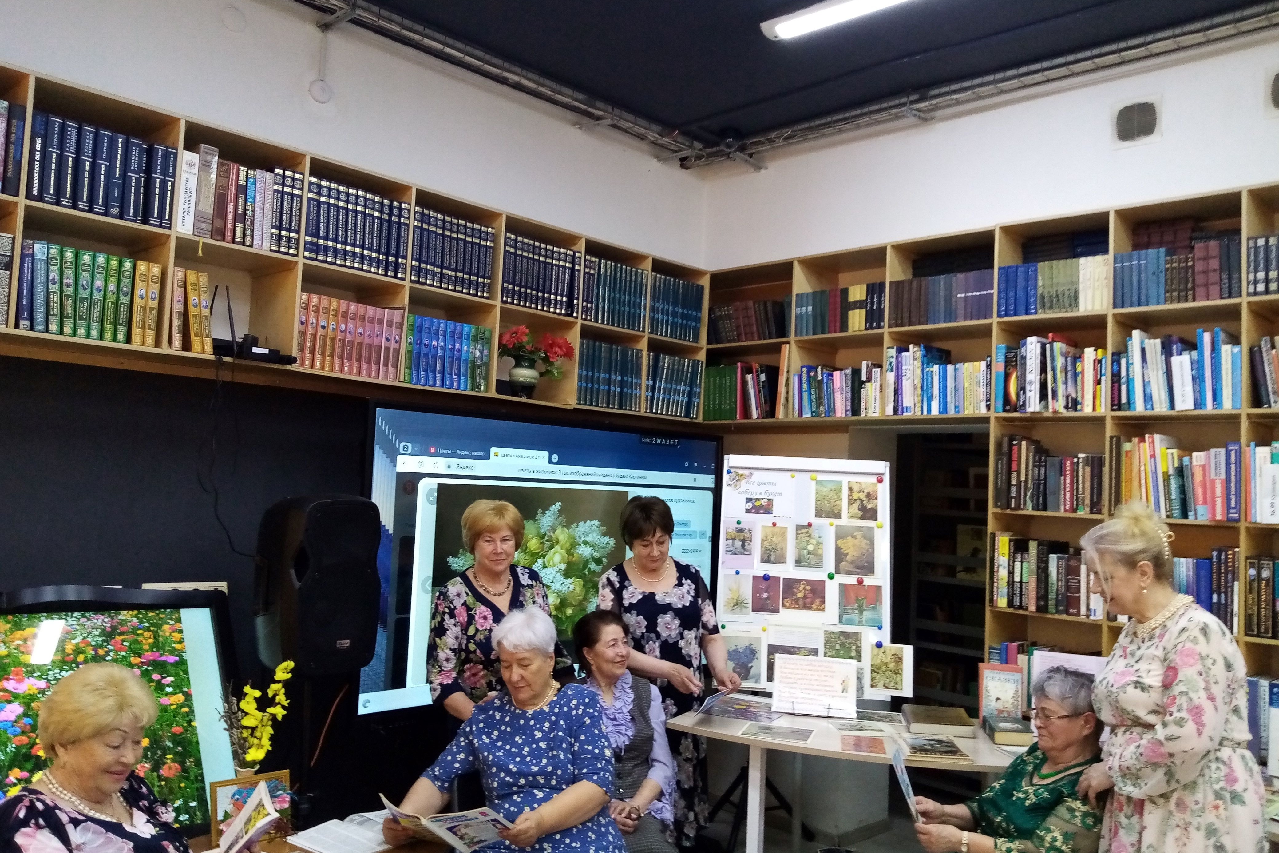 Выставка и стала поводом для встречи старшего поколения читателей, для них была организована беседа по теме «Цветы в литературе и искусстве». Для гостей был проведен обзор выставки, на которой были представлены книги: «Чёрный тюльпан» А. Дюма, «Цветы запоздалые» А. П. Чехова, сборники стихов А. Блока и К. Бальмонта, сонеты У. Шекспира и другие книги. Участники мероприятий говорили о цветах в легендах и художественных произведениях, обсуждали тайный язык цветов и о том, что каждый цветок несёт какое-либо символическое значение: любовь, благодарность, симпатию. В ходе встречи звучали романсы и песни о цветах в исполнении ансамбля «Улыбка»