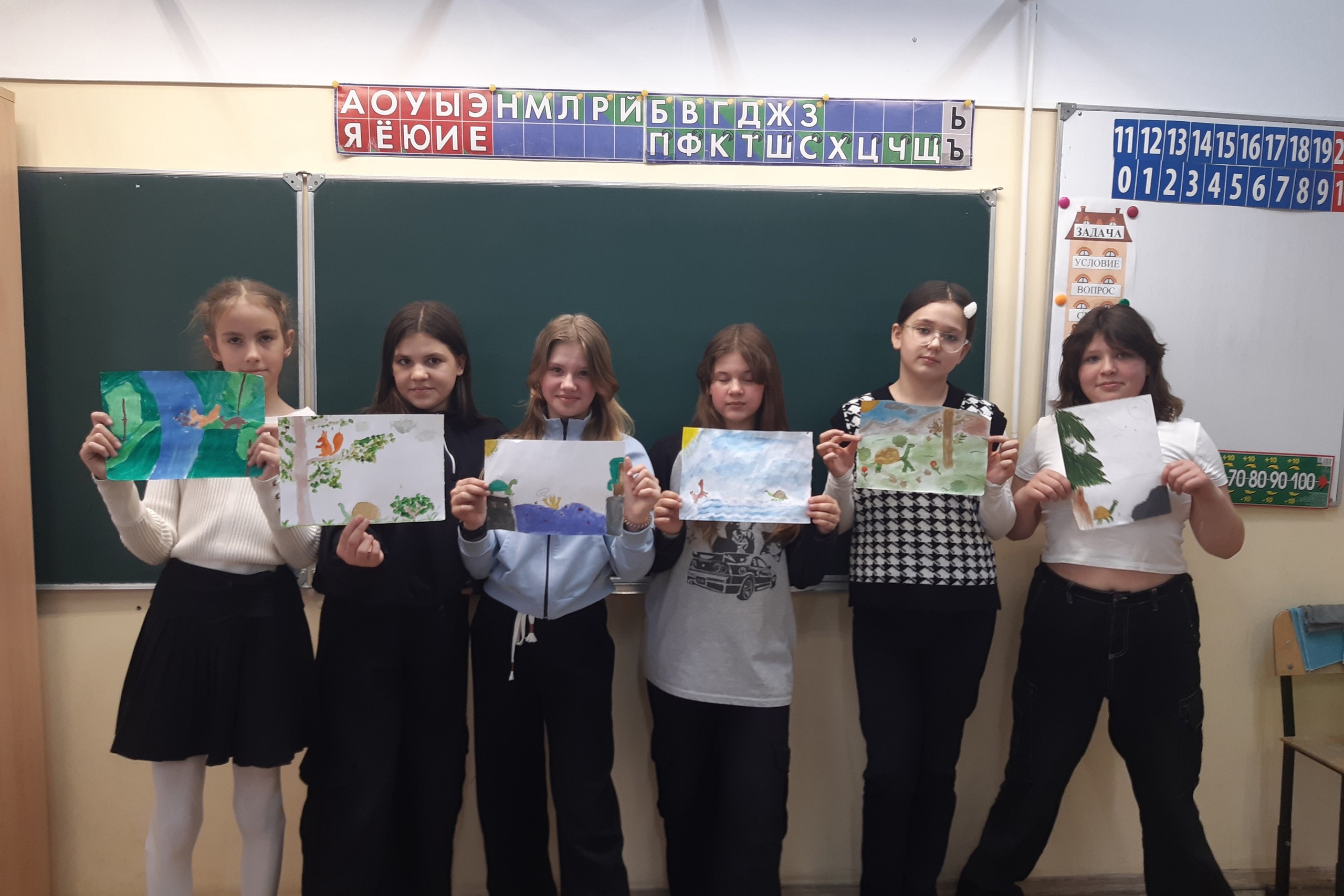 После познавательной беседы состоялось чтение удэгейской сказки «Белка и черепаха», в которой рассказывается о жадности, посеявшей раздор между давними друзьями. Обсудили с детьми фольклорный сюжет и предложили им проиллюстрировать наиболее интересные отрывки. Учащиеся с воодушевлением взялись за творческую работу. Их рисунки получились веселыми и яркими — было принято дружное решение организовать выставку «По мотивам удэгейских сказок…».