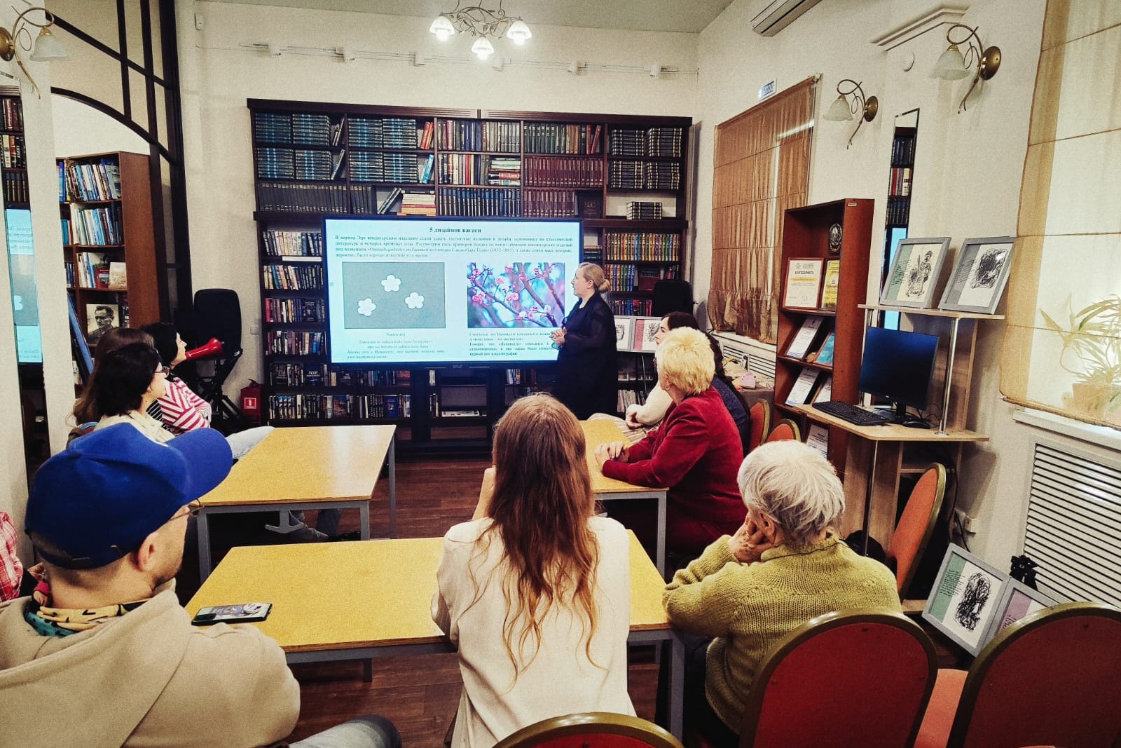 Участников беседы познакомили с гравюрами Тоёкуни, литературными и театральными произведениями, в которых изображены японские сладости.