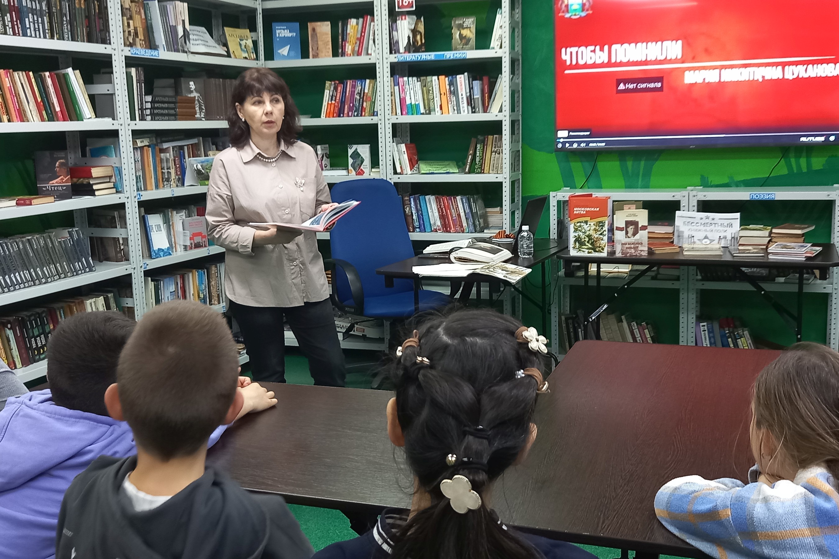Библиотека № 13 (ул. Русская, 78) провела патриотический час «Крылья Победы» для ребят 4 «Г» класса СОШ №60, посвященный 80-летию со дня победы в Великой Отечественной войне. Ребята узнали о летчиках-героях Великой отечественной войны: Александре Покрышкине, Иване Кожедуб, Викторе Талалихине, Николае Гастелло, Марине Расковой и ее авиационной группе «ночные ведьмы». Четвероклассники также посмотрели видеоинтервью с Иваном Кожедуб и сюжет об Алексее Маресьеве, легендарном летчике, ставшем прототипом героя «Повести о настоящем человеке» Бориса Полевого.