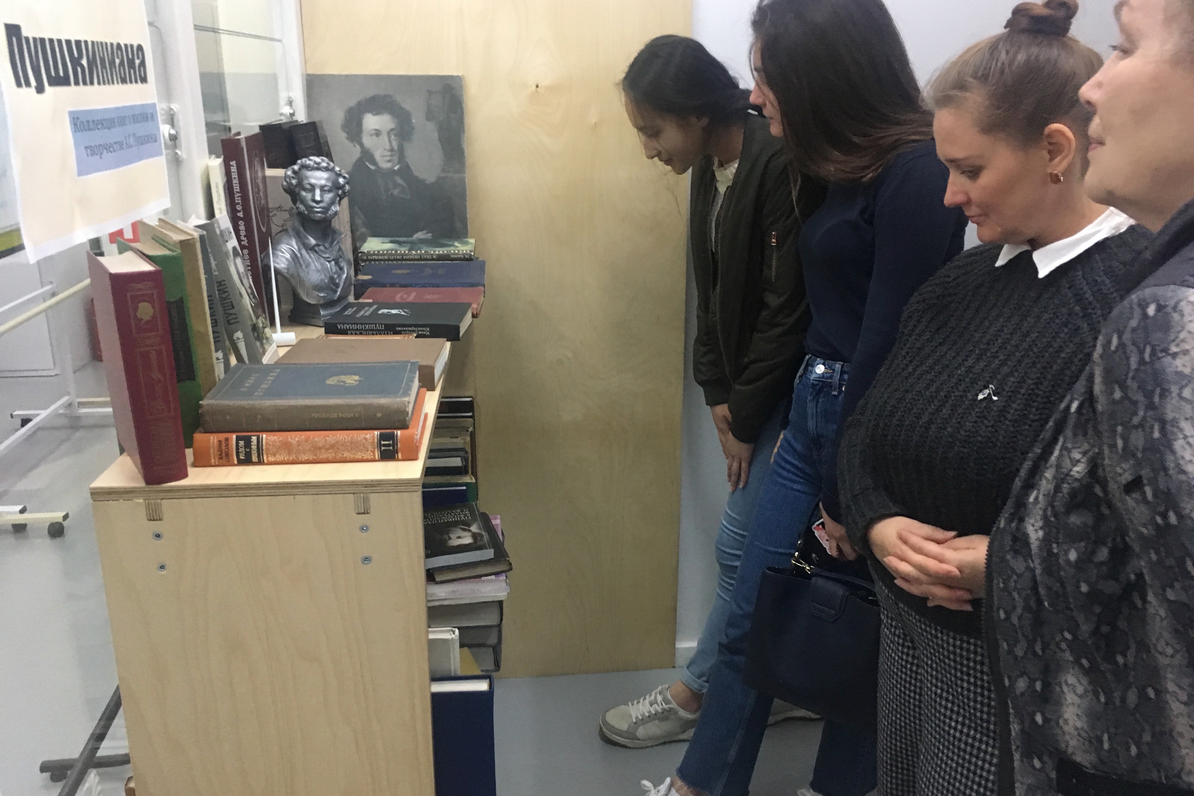 Кроме живого общения, читатели приобщились и к уникальной коллекции библиотеки им. А.С. Пушкина — это выставка редких книг Пушкина и о Пушкине. Выставка «Пушкиниана» является постоянной в библиотеке, и каждый гость может с ней познакомиться.