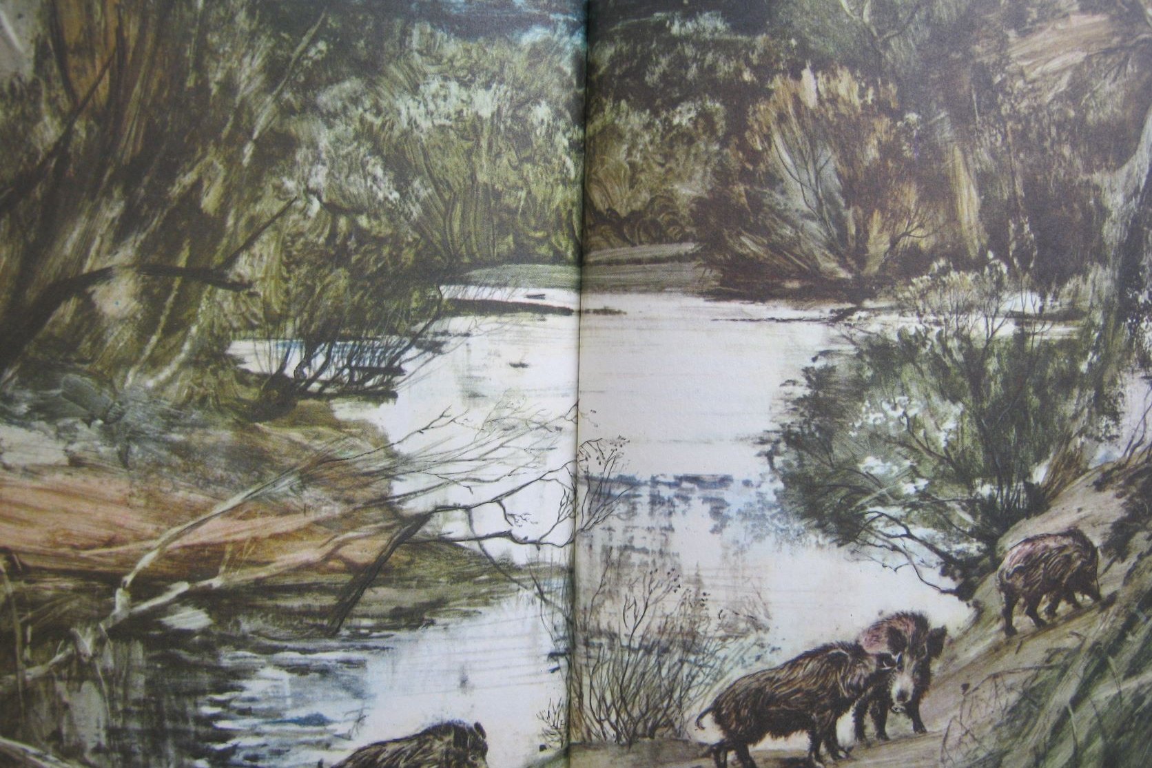 СЧ: Вот я жил в пригороде, у меня была кошка, у нее рождались котята, и кто-то борщ ел сразу, кто-то молочко, а кто-то вискас. И тот, кто борщ ест, тому вискас совершенно не интересен. Это природа такая. Это значило, что мне это безумно нравилось, что утром ты бежишь смотреть, что ты сделал, получилось или нет. Это жизнь в книге. А потом это все равно момент прикладного. Тиражированные вещи — это очень ответственно для меня было. Не вид заработка. Были и проходные вещи, как вид заработка, но потом это все в музеях осталось, в Музее Арсеньева, в ПГКГ. Это был период моей жизни очень знаковый. Я брал книги, которые мне позволяли героя вставить в пейзаж Приморья. Потому что все это книги о Приморье. Я вообще-то от природы пейзажист. И вот где-то мне это мешало, а где-то приносило радость и пользу.
