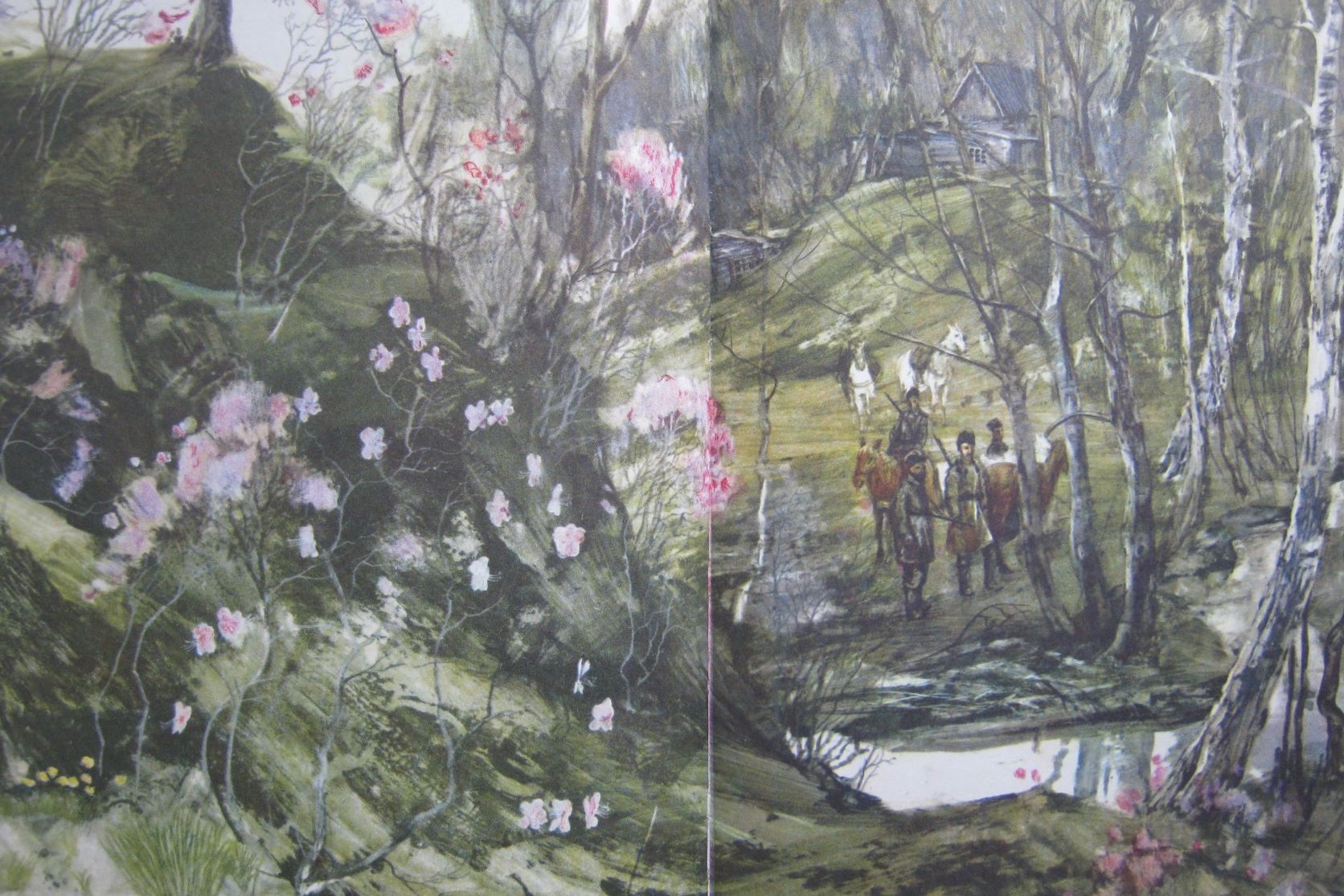 На фотографии художник Сергей Черкасов, источник: сайт vlc.ru. Все фотографии с иллюстрациями сделаны с разворотов книги «По Уссурийскому краю» В. Арсеньева.