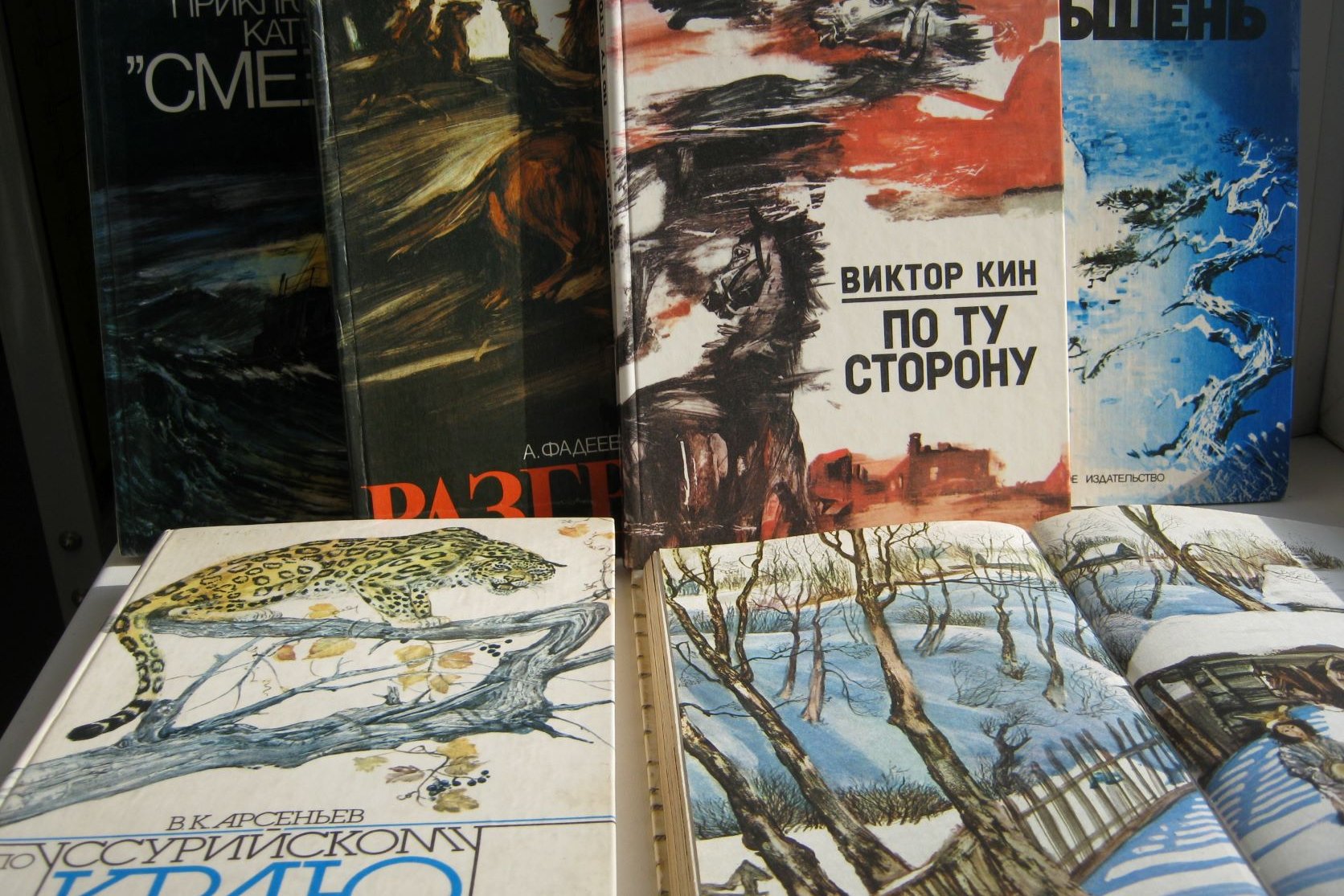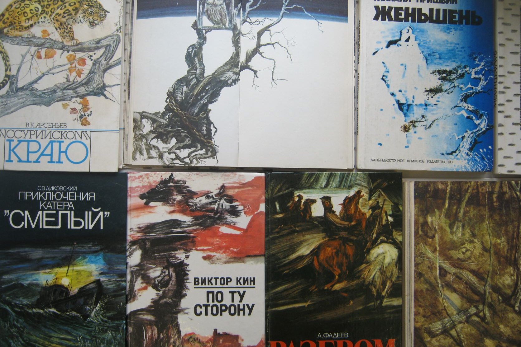 СЧ: Это все была одна серия. «Приключения катера Смелый» С. Диковского, «Таежная Одиссея» Ю. Вознюка, «По ту сторону» Виктора Кина, «Дерсу Узала» Арсеньева. Это зимний «Месяцеслов», а второй, летний, уничтожен был. Она уже была, уже пленки пришли с Москвы, надо было печатать, пробы, все собрано было. Но началась перестройка. Я потом оригиналы продал в Америку. Так что книга уже уничтожена, часть продана.