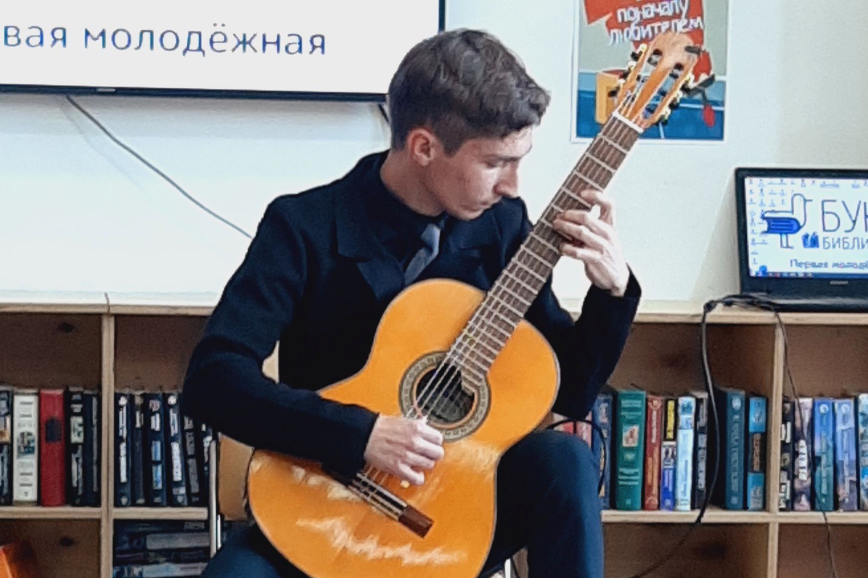 2 июня в библиотеке им. А.С. Пушкина в рамках программа «Вечерняя библиотека» состоялся сольный концерт классической гитарной музыки Ерёмина Глеба — студента 4 курса музыкального колледжа при Дальневосточном государственном институте искусств, участника «Гитара в Гнесинке», «Музыкальный Владивосток — 2022», «Grand music art», «В контакте с гитарой» и различных других музыкальных проектов.