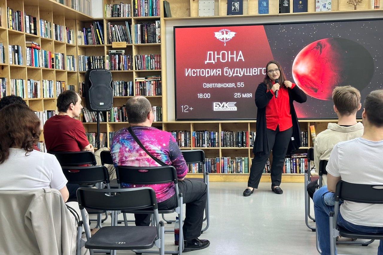 На встрече обсуждался цикл произведений писателя Френка Герберта «Дюна», а также три его экранизации. Евгения Омельченко представила интересные аспекты мироустройства «Дюны». Философию главных персонажей и их цели, а также различия между экранизациями и оригинальным произведением представил Виталий Данилов. О комиксах по мотивам «Дюны» и о том, какие произведения были ею вдохновлены, рассказал Роман Сиин. Особое внимание ведущие уделили обсуждению изменений, внесенных режиссерами и сценаристами в фильмы ради кинематографичности текста и их последствия для понимания сюжета теми, кто не читал книги.