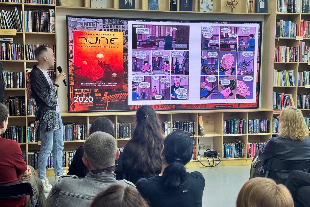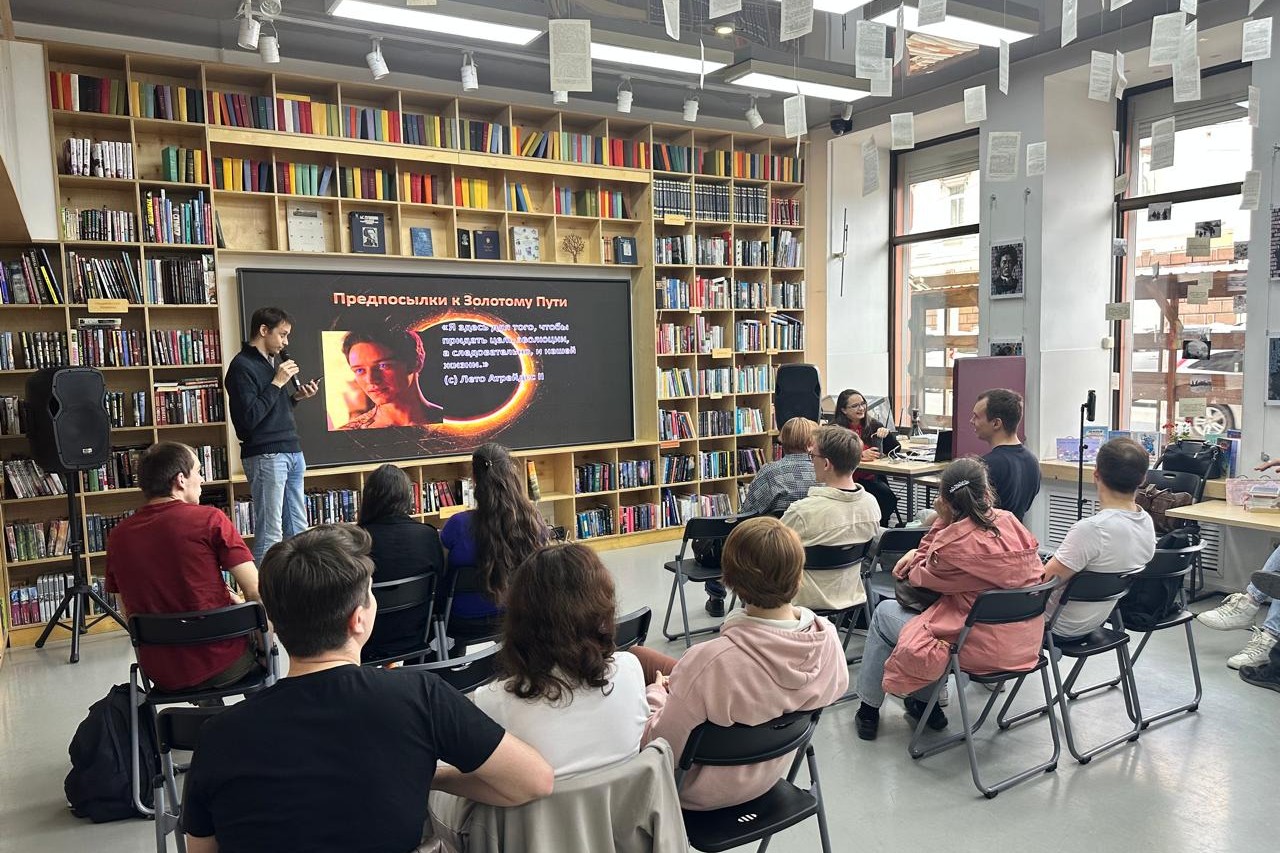 На встрече обсуждался цикл произведений писателя Френка Герберта «Дюна», а также три его экранизации. Евгения Омельченко представила интересные аспекты мироустройства «Дюны». Философию главных персонажей и их цели, а также различия между экранизациями и оригинальным произведением представил Виталий Данилов. О комиксах по мотивам «Дюны» и о том, какие произведения были ею вдохновлены, рассказал Роман Сиин. Особое внимание ведущие уделили обсуждению изменений, внесенных режиссерами и сценаристами в фильмы ради кинематографичности текста и их последствия для понимания сюжета теми, кто не читал книги.