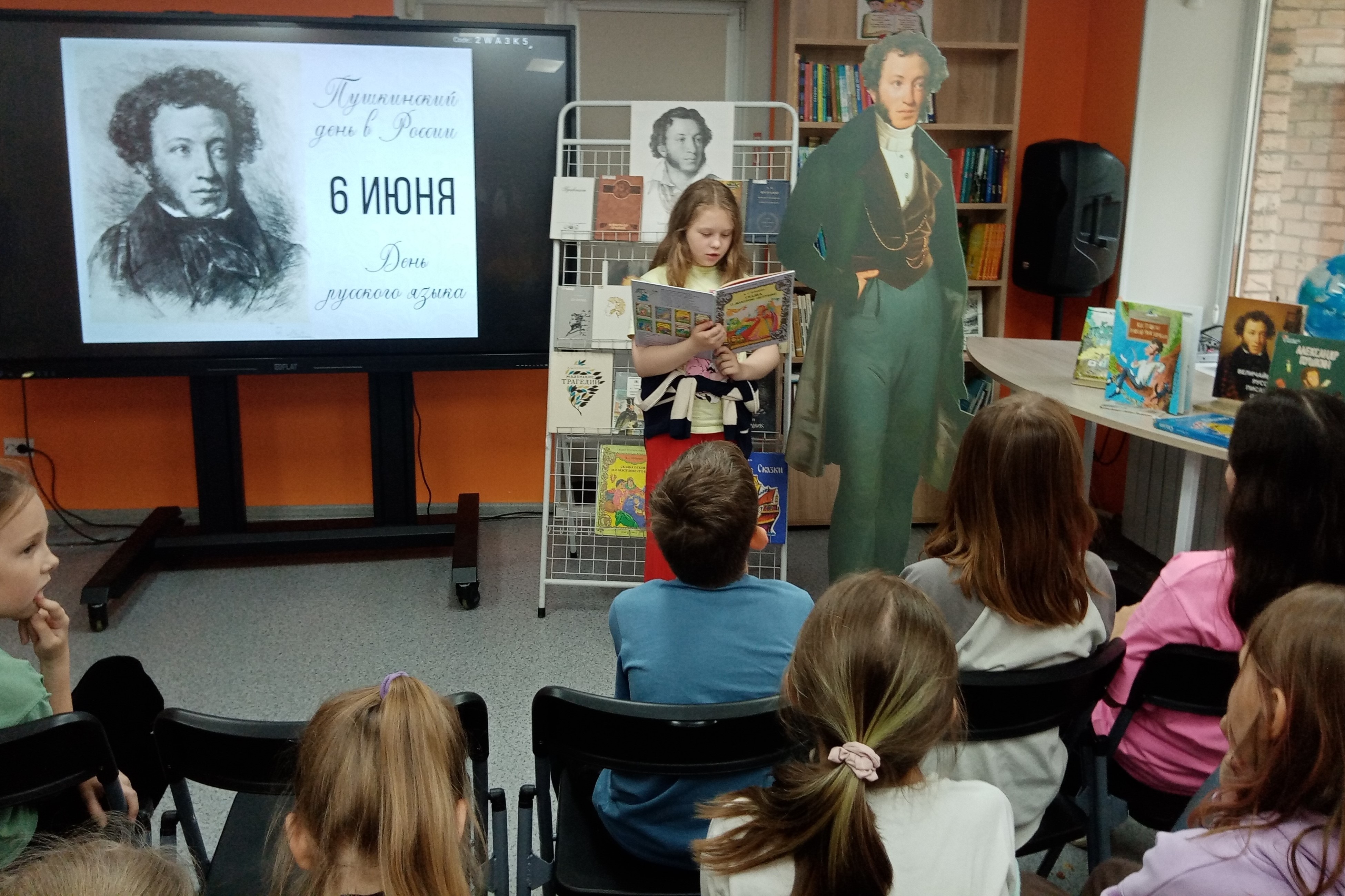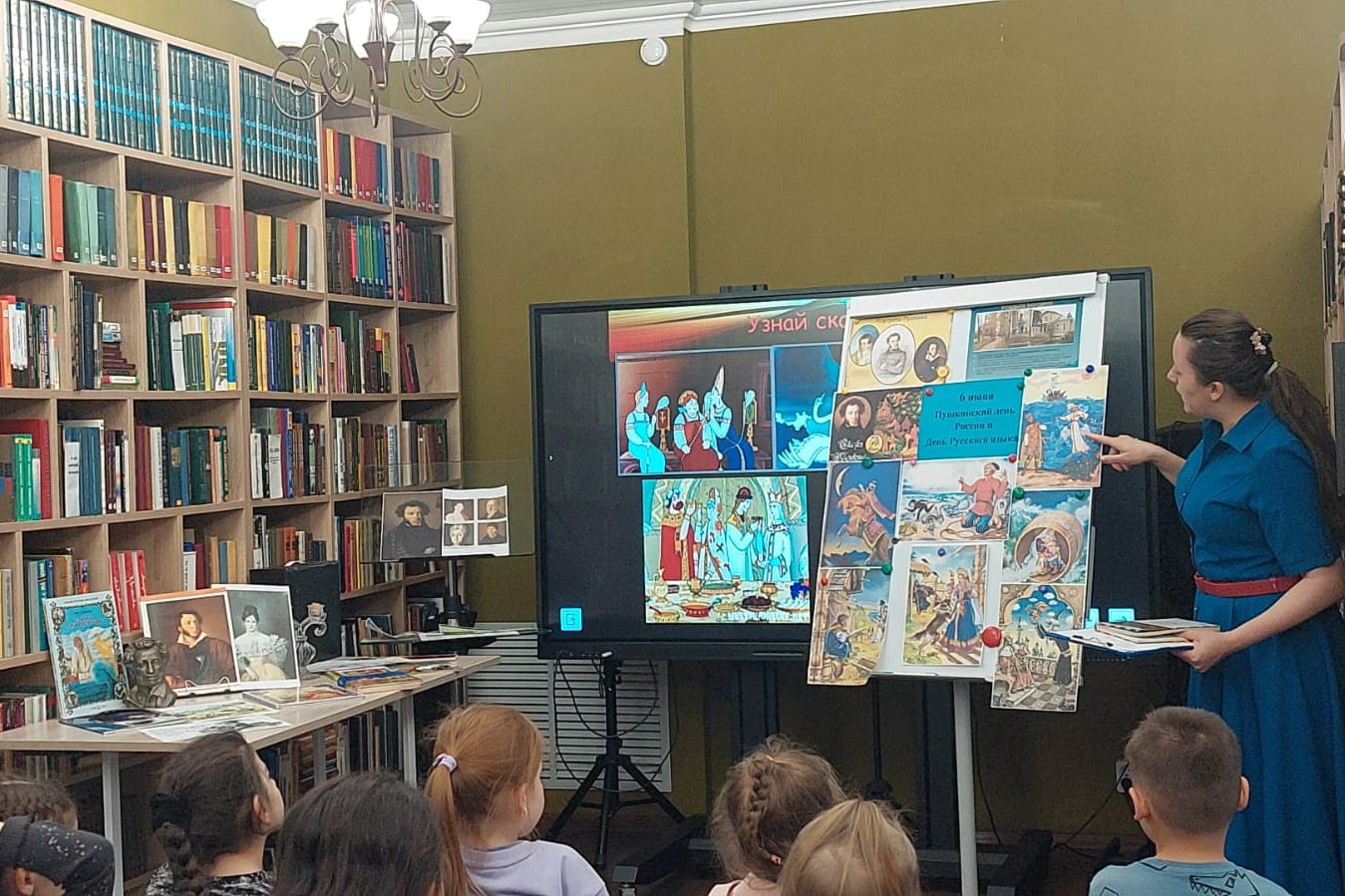 6 июня воспитанники Творческой мастерской «Дети Пикассо» приняли участие в Акции «Давайте Пушкина читать!» в детской библиотеке № 7. Мальчишки и девчонки вначале с интересом участвовали в беседе о жизни и творчестве Пушкина. Они слушали рассказы из книги Валерия Воскобойникова «Жизнь замечательный детей», смотрели презентацию о нем, сами рассказывали, что знают о поэте. Узнали, как изменилась русская речь под пером великого поэта. Днем ранее в библиотеке собрались воспитанники Детского сада № 43, активно участвовали в увлекательной квест-игре и отвечали на вопросы «ученого кота», стараясь определить, из каких сказок взяты следующие отрывки.