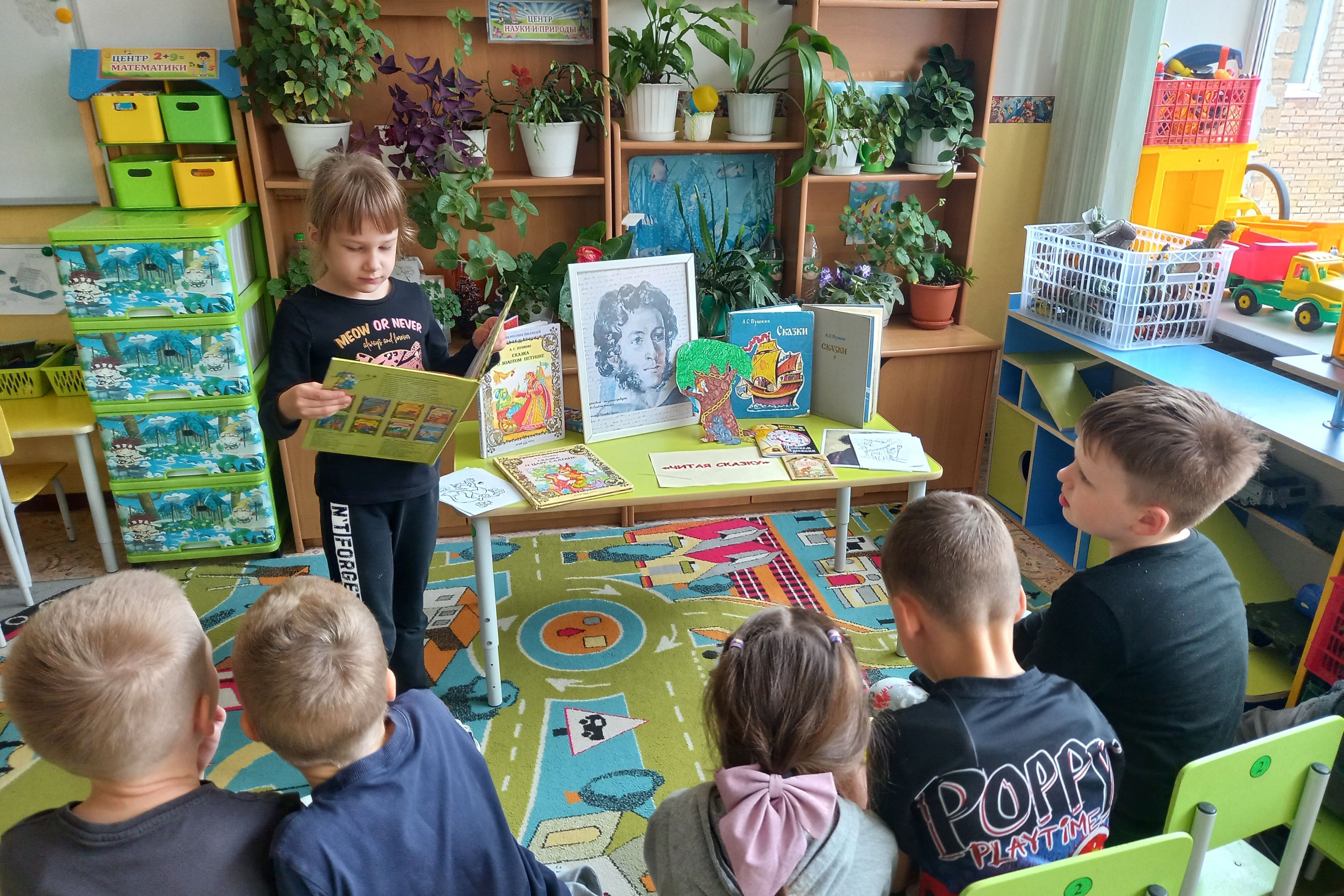 Библиотека № 17 для воспитанников детского сада № 187 провела путешествие по страницам сказок Александра Сергеевича Пушкина «Читая сказку». Библиотекарь познакомила ребят с интересными фактами из биографии автора, отметив, что значительное влияние на личность будущего писателя и поэта оказала его няня Арина Родионовна, сумевшая заложить в его душу любовь к народным традициям и творчеству. Отгадывали, каким персонажам принадлежат высказывания, узнавали сказки по иллюстрациям, отвечали на вопросы викторины по биографии и произведениям автора. Завершилось мероприятие чтением вслух произведений А.С. Пушкина «Сказка о попе и о работнике его Балде» и «Сказка о золотом петушке».