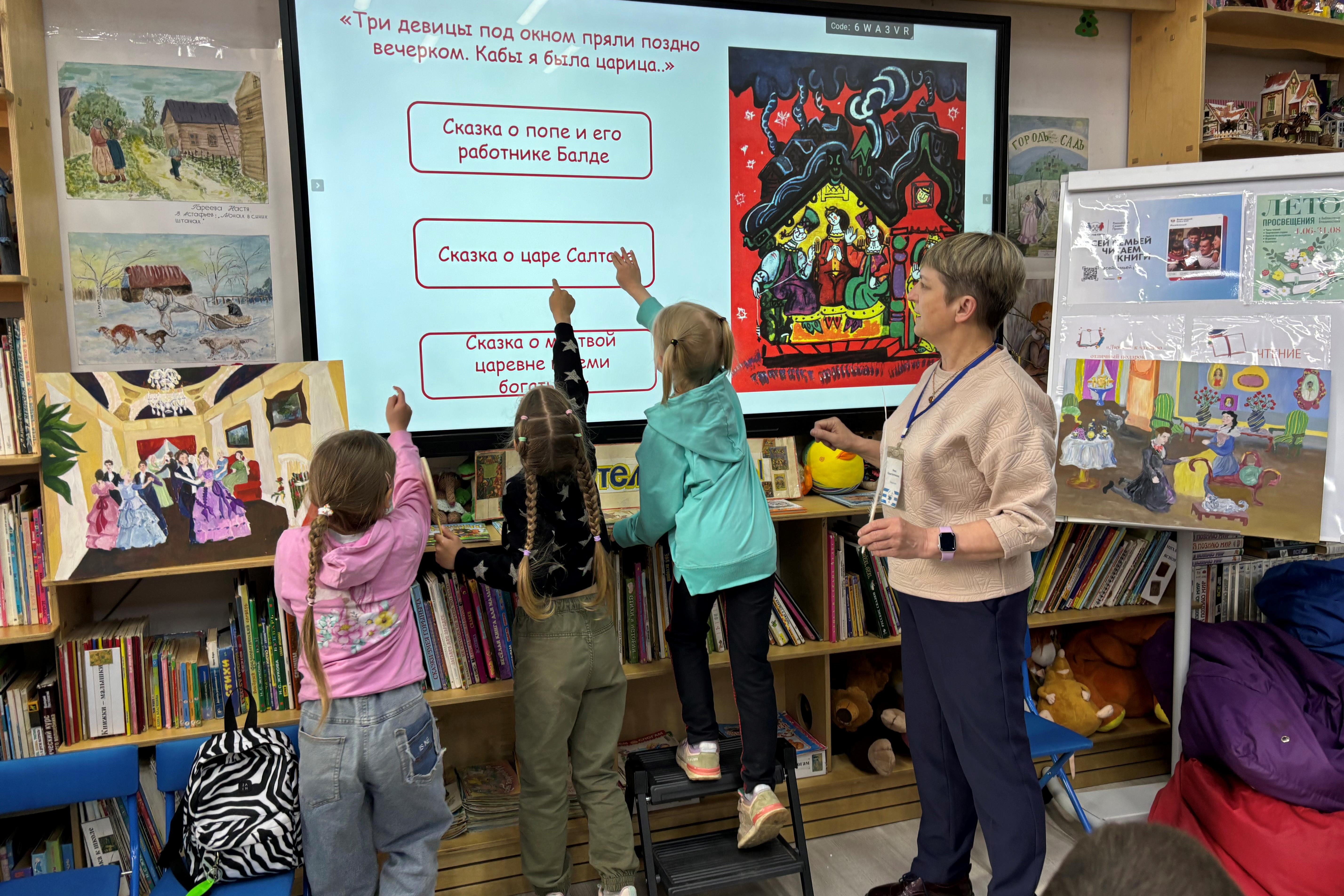 6 июня воспитанники Творческой мастерской «Дети Пикассо» приняли участие в Акции «Давайте Пушкина читать!» в детской библиотеке № 7. Мальчишки и девчонки вначале с интересом участвовали в беседе о жизни и творчестве Пушкина. Они слушали рассказы из книги Валерия Воскобойникова «Жизнь замечательный детей», смотрели презентацию о нем, сами рассказывали, что знают о поэте. Узнали, как изменилась русская речь под пером великого поэта. Днем ранее в библиотеке собрались воспитанники Детского сада № 43, активно участвовали в увлекательной квест-игре и отвечали на вопросы «ученого кота», стараясь определить, из каких сказок взяты следующие отрывки.