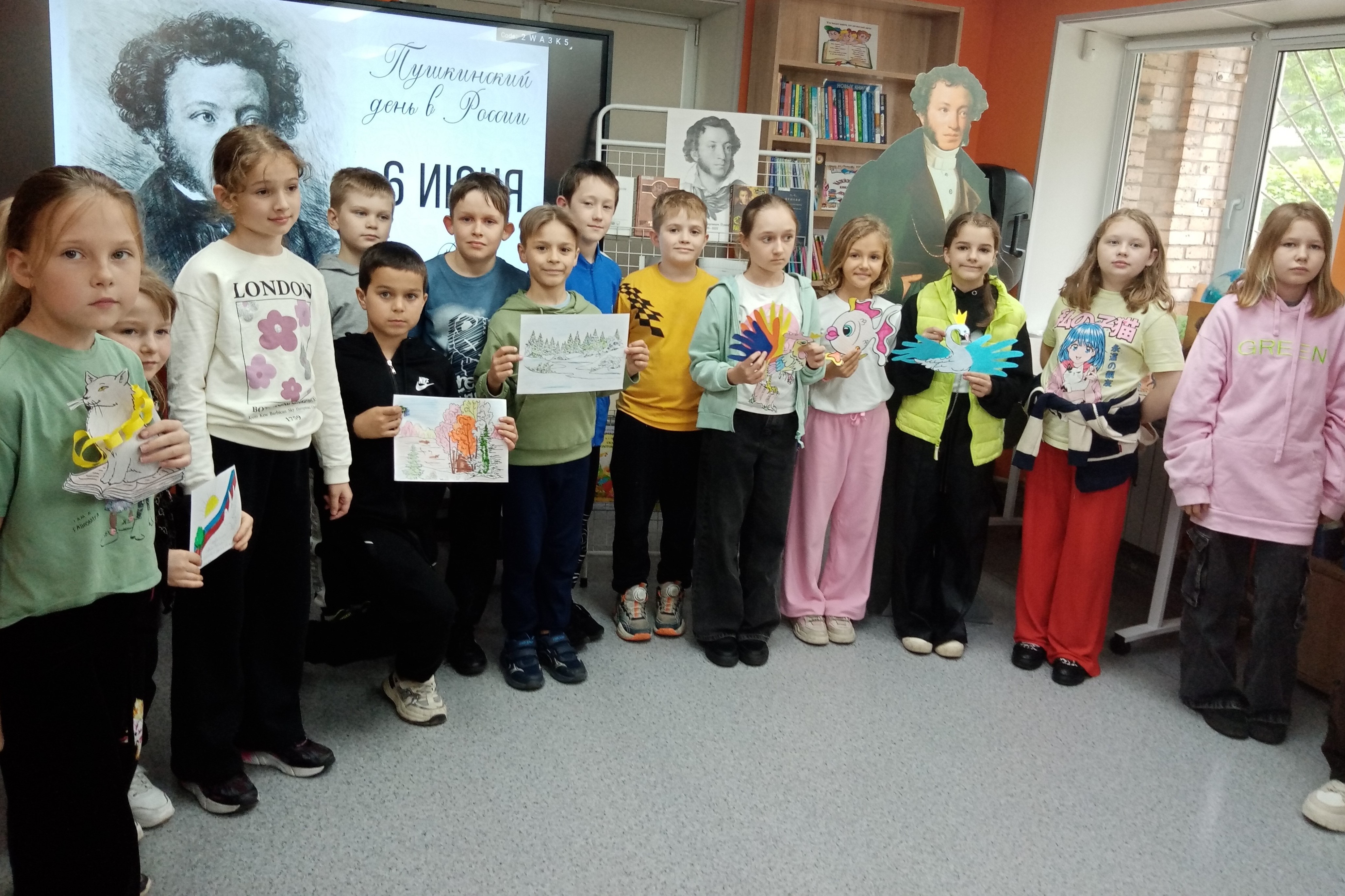 6 июня ребята из пришкольного лагеря школы № 6 пришли в детскую библиотеку № 5 поздравить Александра Сергеевича Пушкина с днём рождения. А каким же был мальчик Саша? Хорошо ли он учился? Сколько друзей у него было, когда он был ребёнком? Очень хотелось получить ответы на все эти вопросы… Ребята окунулись в атмосферу сказок и чудес! Они писали пером красивым почерком, как у Пушкина. Превращались в старика и рыбку, в самолюбивую царицу и волшебное зеркало, в комара и царевну лебедь. Отгадали викторину по сказкам и каждый нарисовал свой портрет Александра Сергеевича, каким он представился им теперь.