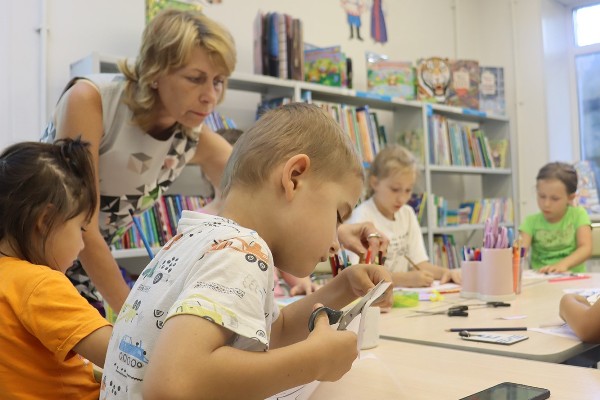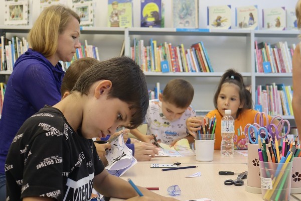 На творческих мастерских в библиотеке № 8 летом перешли с бумагопластики на менее трудоемкие поделки-раскраски из цветной бумаги. Но оказалось, что процесс разрисовывания занимает дольше времени, не потому что сложно, а потому что это увлекательно и это чистое творчество. Причем, как это часто бывает на летних каникулах, к детям на занятиях творческой мастерской присоединяются и подростки, то есть те школьники, которых по возрасту больше интересуют другие занятия.