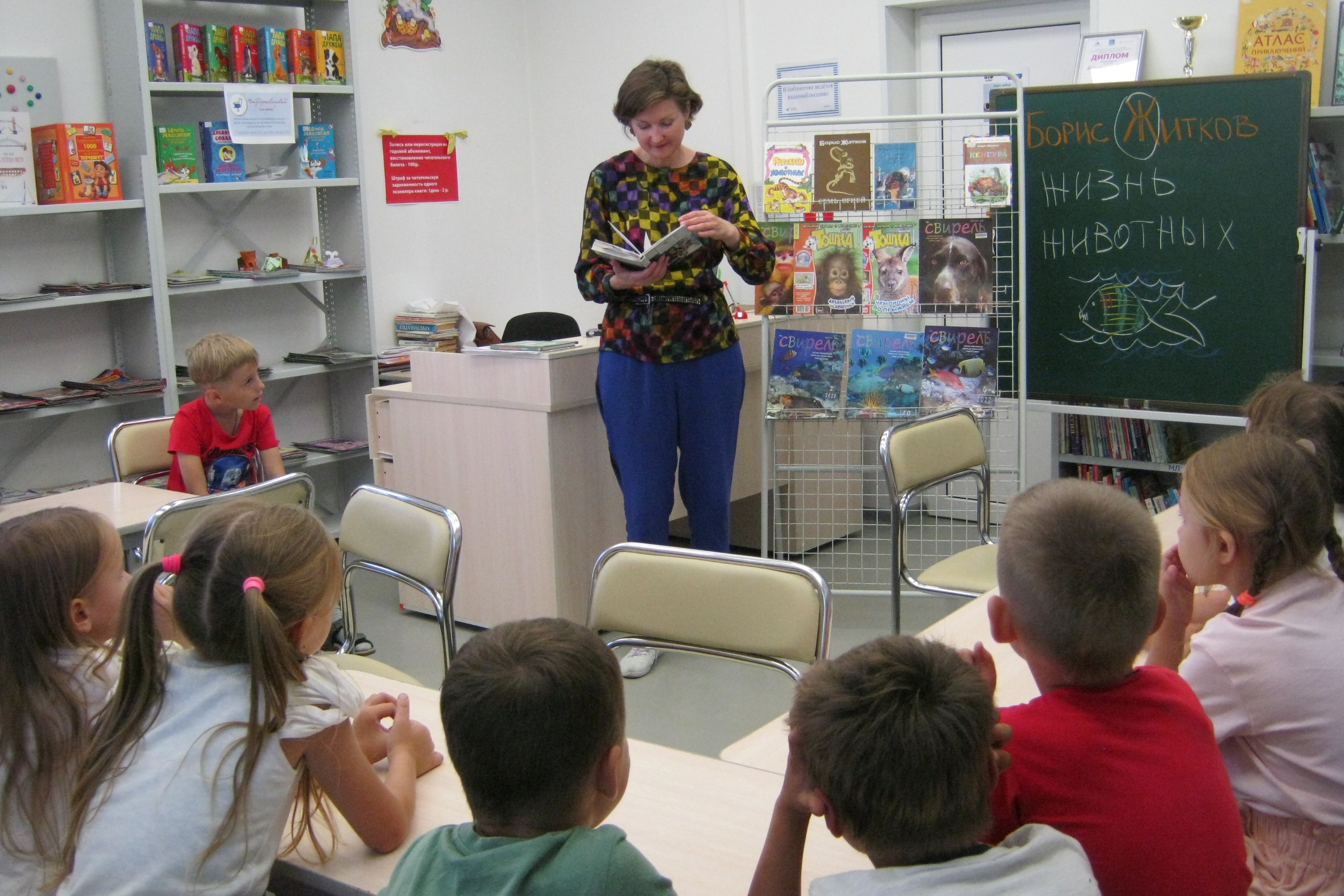 2 сентября в библиотеку №8 детсадовцы пришли послушать истории Бориса Житкова. Первой пришла группа детей помладше, для них здесь все было в новинку: и то, что на детском абонементе полно разных журналов, и то, что в библиотеке есть кинозал. В кинозале, кстати, детвора смотрела не «Пудю» по Житкову, этот мультфильм им, пожалуй, пока непонятен, а «Буквальные истории» и конечно, про букву Ж, потому что почти все детсадовцы сразу сориентировались с какой буквы начинаются слова «жизнь», «живое», «животные» и фамилия писателя-юбиляра. Борис Житков родился сто сорок лет назад, прожил всего пятьдесят шесть лет, писать начал не по собственному побуждению, не от хорошей жизни, а в безработицу, по рекомендации Корнея Чуковского, своего друга по одесскому детству. Чем старше становился писатель, тем для все более маленькой аудитории хотел писать книги. Как раз истории о животных и познакомили малышей из детского сада №80 с замечательным талантом Житкова. Как трогательно заботился о своей захворавшей Леди орангутанг Тихон Матвеевич, как было смешно и чуть-чуть обидно за пса Рябку, мокшего под дождем на улице, пока в будке спала его любимица кошка, как страшно было за пятнадцатилетнего Колю, попавшего в метель и как жалко было Колину лошадь с ее выставленной вперед, дрожащей от усталости ножкой. Животных у Житкова действительно часто жалко: старенького слона-строителя, кенгуру, избитого разъярившимся матросом, кота Мышкина, пойманного совой. И все-таки Борис Житков описывал истории не из жизни зоопарка, а из самой жизни, из того, что бывало, а бывало, значит, не только смешное или радостное, но и печальное.