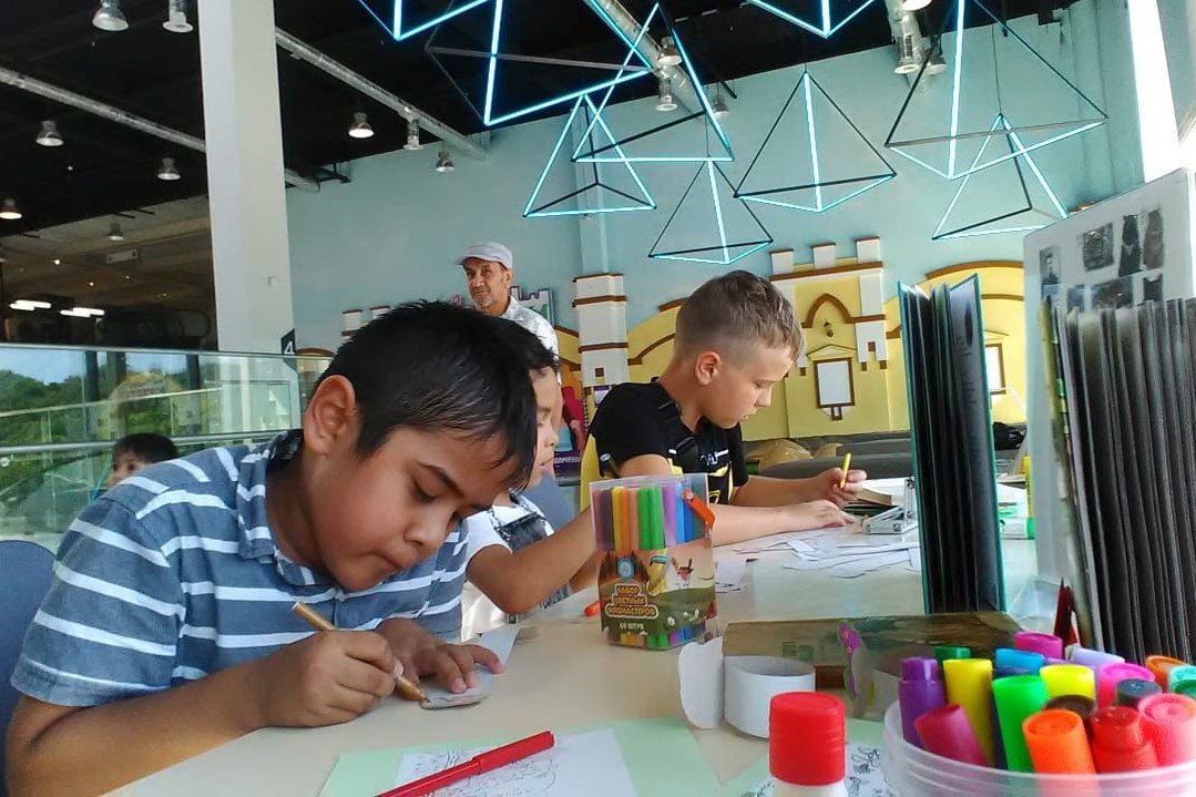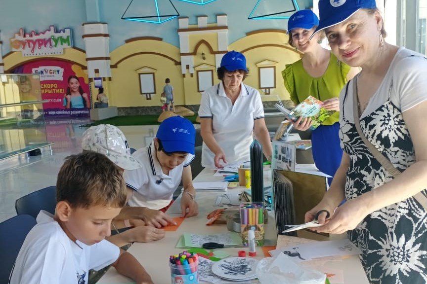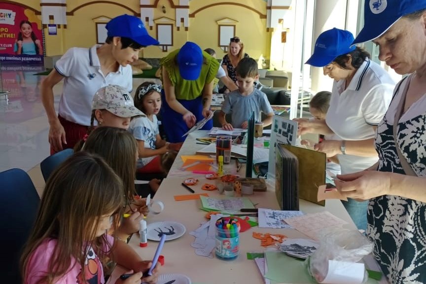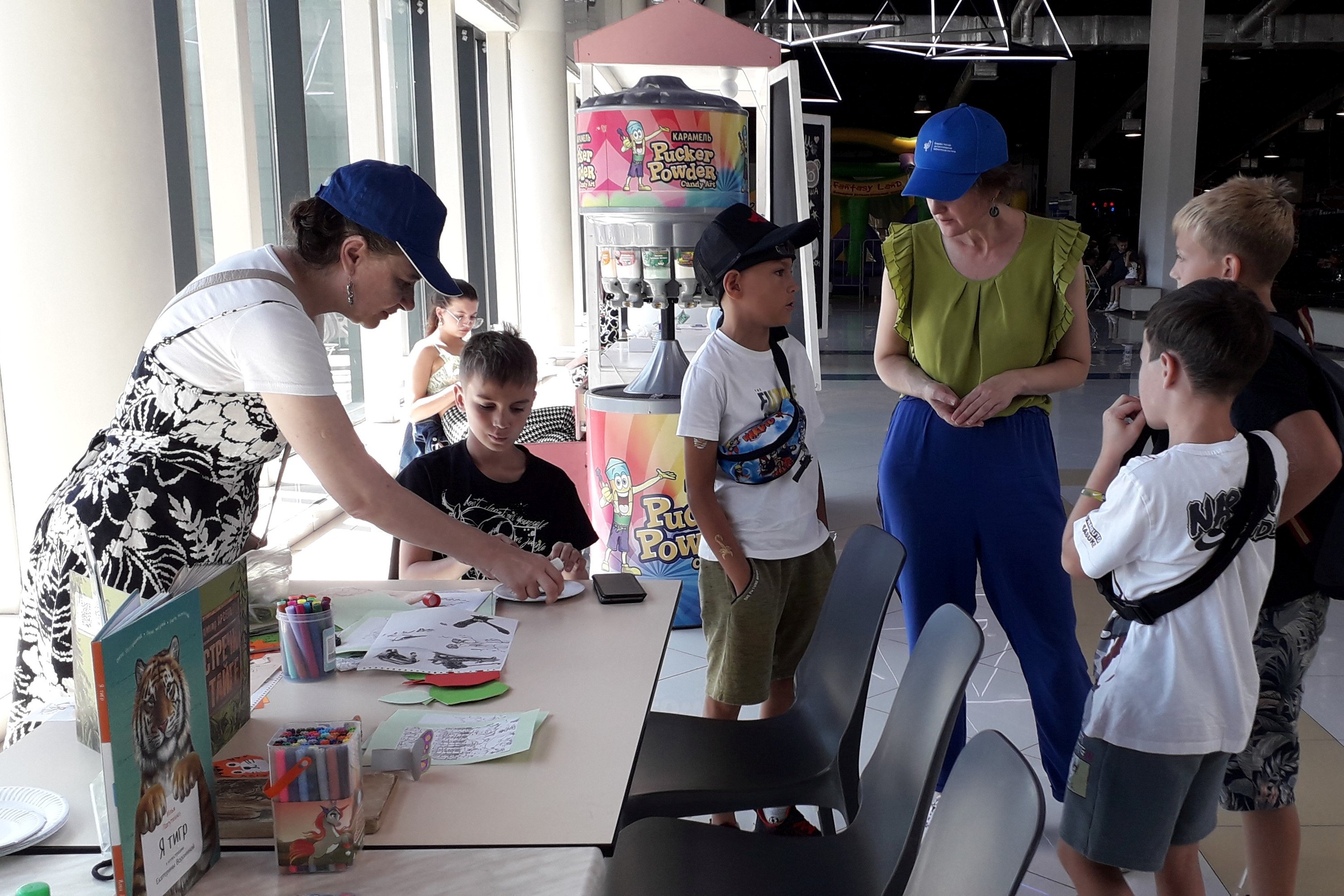 В творческой мастерской юные горожане разукрашивали браслеты в форме бабочки, головы тигра и медведя, делали аппликации на лесную тему, тигренка в технике оригами. Особой популярностью пользовалась аппликация на бумажной тарелке с иллюстрациями Сергея Черкасова к книге В.К. Арсеньева «По Уссурийскому краю». Здесь у ребят была возможность стать «соавтором» художника и, используя его рисунок, создать свою композицию.