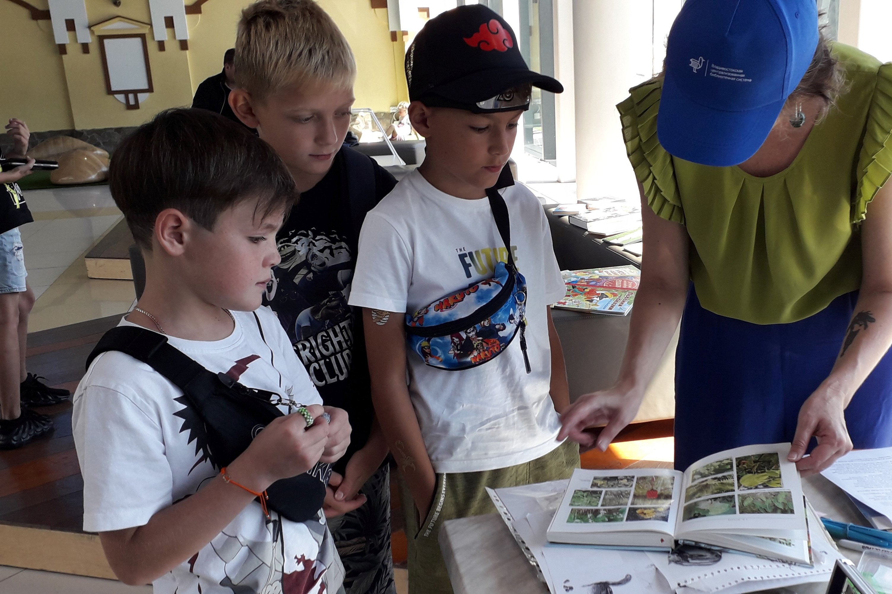 Дети и взрослые с удовольствием откликались на беседу об Арсеньеве и достопримечательностях Приморского края. Расширить свои знания о животных, растениях, географических объектах Приморья помогла викторина, составленная по книге В. Арсеньева «Встречи в тайге». Ребята не просто отвечали на вопросы, но и слушали отрывки из книги и рассматривали иллюстрации, разгадывали сканворд, посвященный животным и птицам Уссурийской тайги. Для тех, кто хотел больше узнать о флоре нашего края, была предложена викторина по книге Андрея Нечаева «Зеленые стрелы».