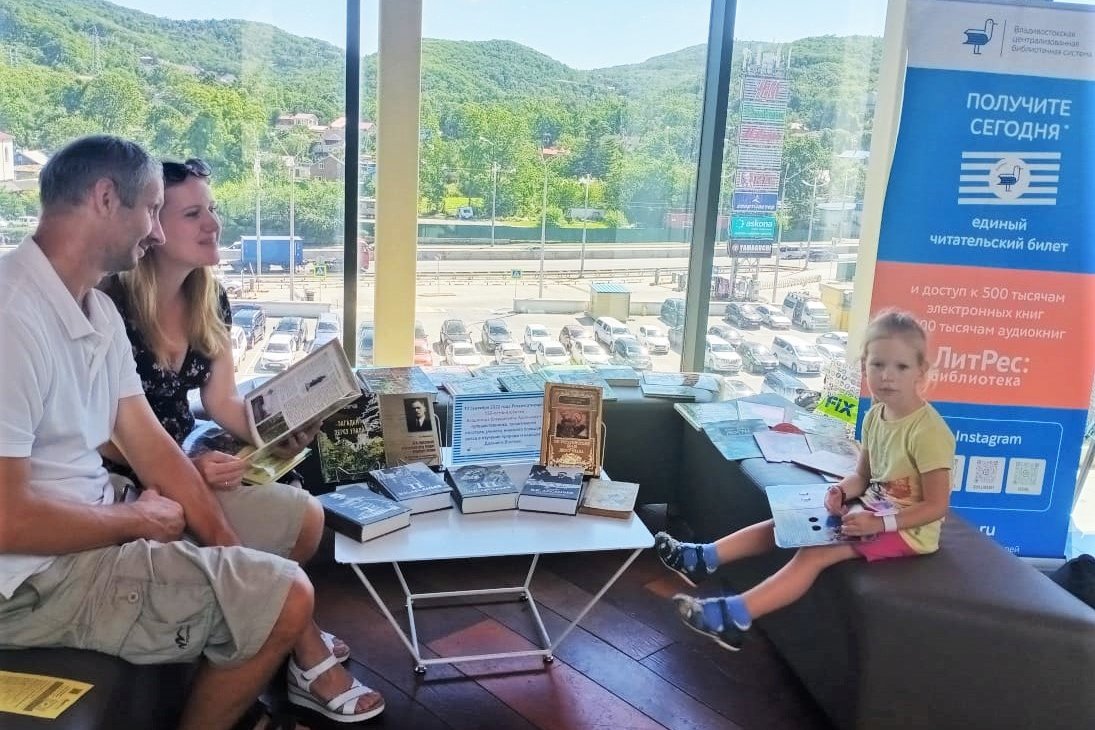 На открытой библиотечной площадке продолжает работу выездной читальный зал, где можно почитать книги и журналы, а также получить единый читательский билет МБУК «ВЦБС» и подробную консультацию о едином книжном фонде. Книги, предлагаемые для знакомства посетителям, периодически обновляются – добавляется литература, представляющая наибольший интерес у читателей. На сей раз, вниманию читателей были представлены издания, связанные с именем Владимира Клавдиевича Арсеньева – полное собрание сочинений в шести томах издательства «Рубеж», «По Уссурийскому краю». Дерсу Узала», изданные в книжной серии «Великие русские путешественники», «По Уссурийскому краю», вышедшей в Дальневосточном книжном издательстве с иллюстрациями владивостокского художника Сергея Черкасова, раритетное издание «Дерсу Узала» 1955 года. Кроме того, были представлены книги о Владимире Клавдиевиче – «Загадки Дерсу Узала», «Согласно личного приказания Вашего Высокопревосходительства…» Ивана Егорчева, «Арсеньев и близкие ему люди» Амира Хисамутдинова и др. Юные читатели познакомились с книгой «Встречи в тайге», изданной в красочном художественном исполнении и смогли сравнить ее с таким же изданием, но 50-летней давности. Интерес у ребят вызвали книги о животных Приморья, в том числе, «Красная Книга Приморского края».