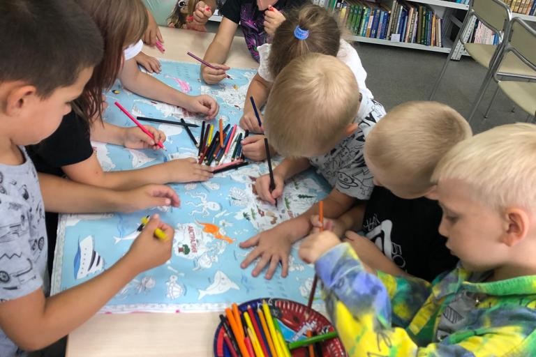 Это очень увлекательный и познавательный журнал, в котором есть масса красочных фотографий, статей и иллюстраций про домашних и диких животных. Про одного из них ребятам прочитали. А больше всего дошкольникам понравилось отгадывать веселые загадки и интересные викторины из журнала. Творческой частью мероприятия стало совместное разукрашивание большой карты мира с изображением животных, живущих на разных материках. Это способствовало для лучшего запоминания. В заключение ребята посмотрели интересный фильм о ёжиках и поиграли в мяч.