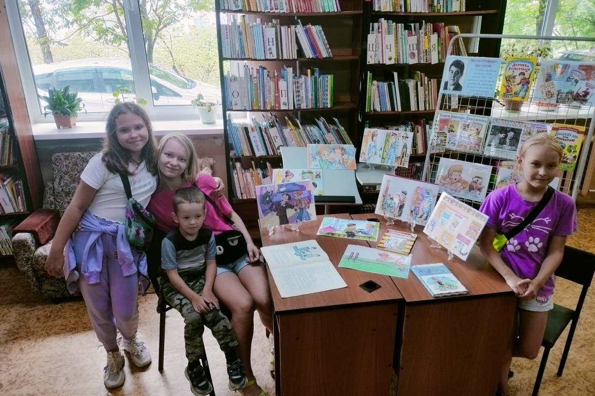 В этот же день в библиотеке №14 провели литературный час «Весёлые ребята Виктора Драгунского». Вспомнили детского писателя Виктора Драгунского. Добрые и озорные рассказы писателя стали классикой детской литературы советского периода. Их с удовольствием читают и сейчас, находя забавными, остроумными и поучительными.
