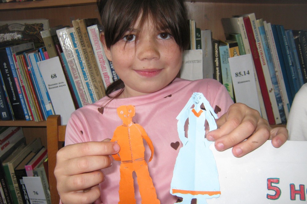 Попутно библиотекари знакомили детей с историей бумажной куклы и видами игры с ней. Ведь не только куколку одевали – переодевали, но и еще дети получали первые навыки хороших манер. К примеру, как собраться в гости, что одеть на прогулку, узнали девочки и что такое «деловой стиль», «базовый наряд», «оверсайз», «бохо – шик». Вот так в играх и творчестве из девочек получаются модные дизайнеры, практичные хозяюшки и утончённые леди.