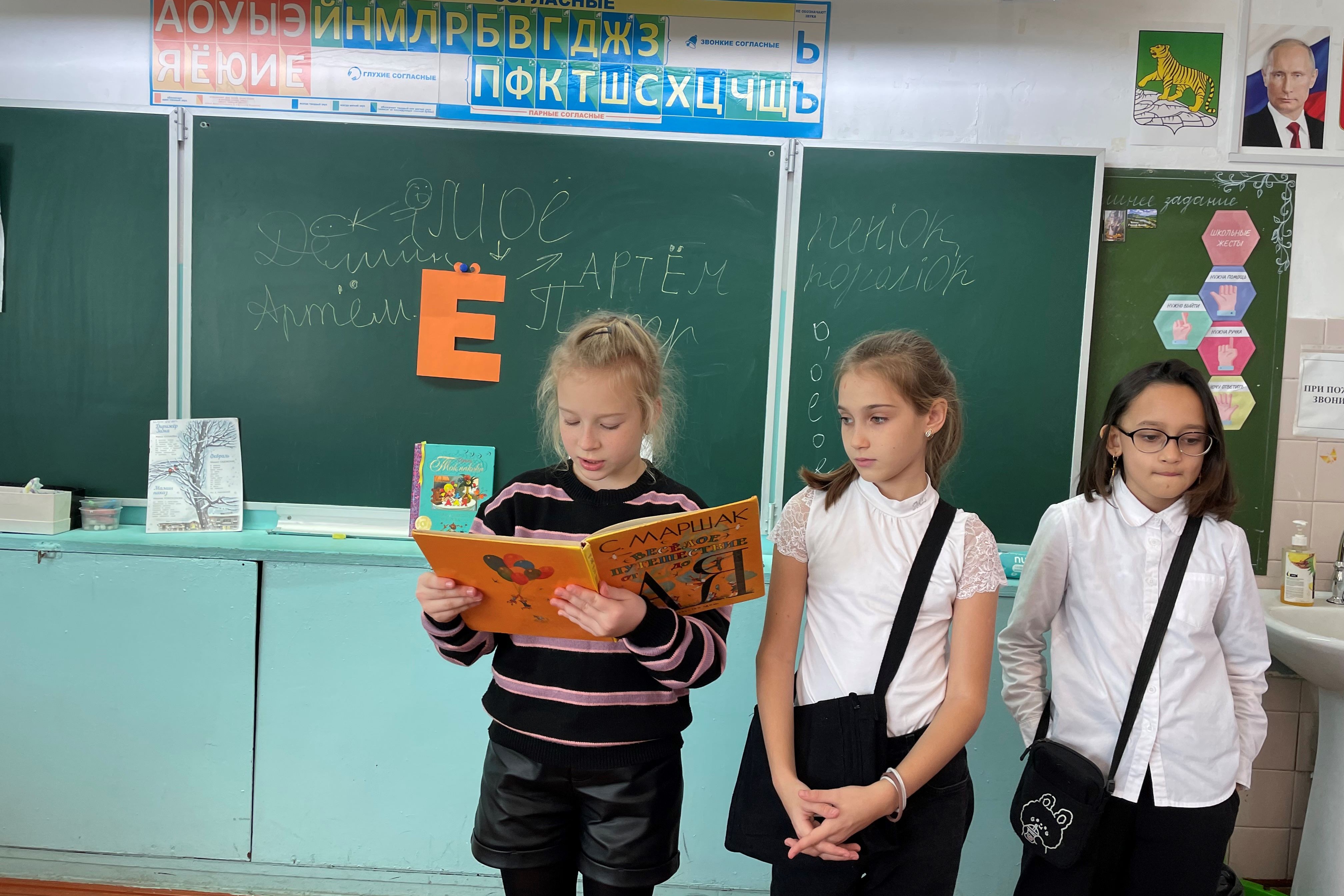 Ребята слушали и читали отрывки из книги Ирины Токмаковой «Аля, Кляксич и буква «А», стихи Самуила Маршака про букву «ё», вспоминали писателей, у которых в фамилии есть буква «ё», искали в своих учебниках эту букву.