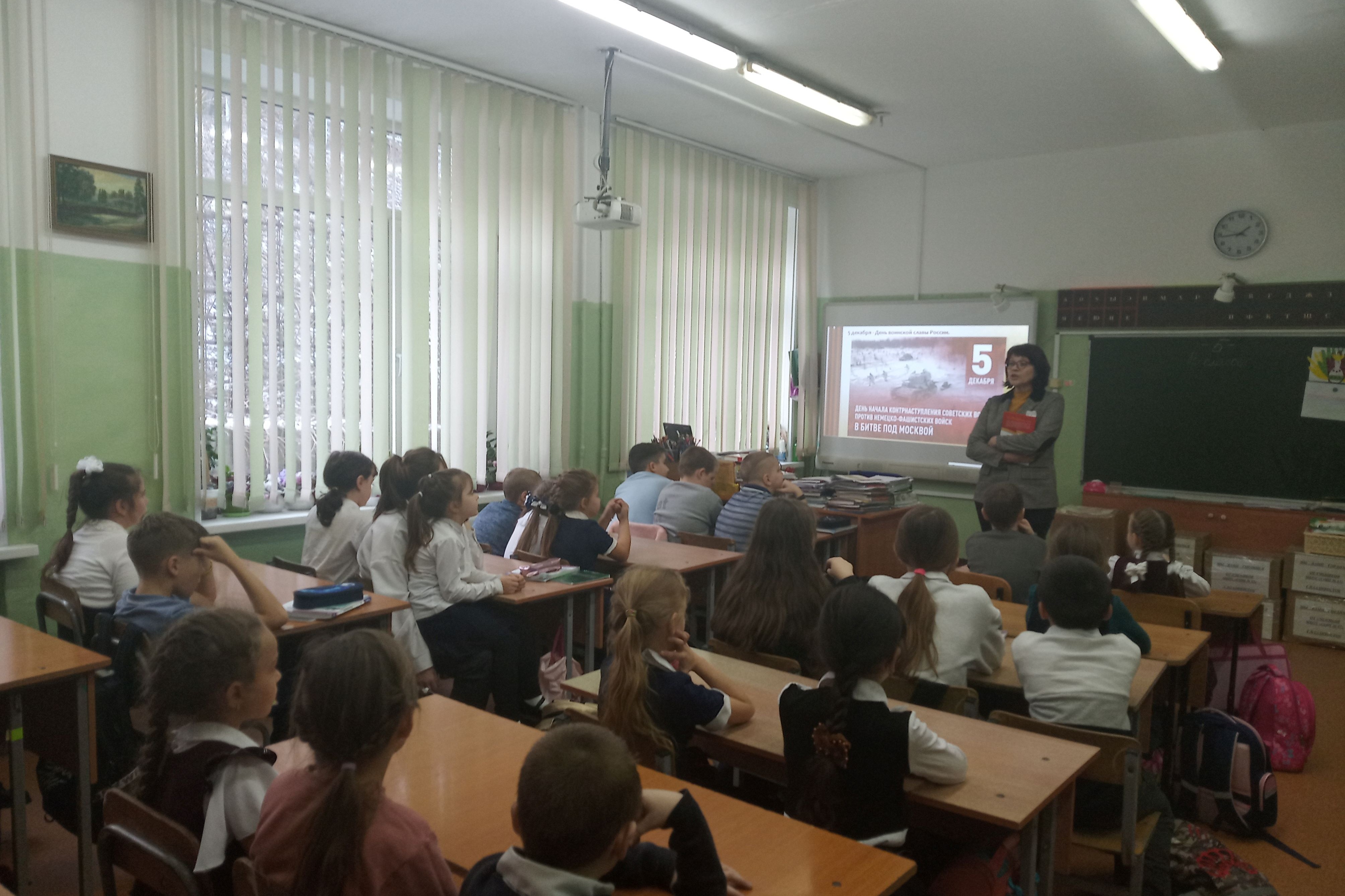 5 декабря в СОШ № 43 для учащихся 1 «А» и 4 «А» классов прошли громкие чтения «Великая битва за Москву». Сотрудники библиотеки № 16 рассказали детям о ходе военных действий.