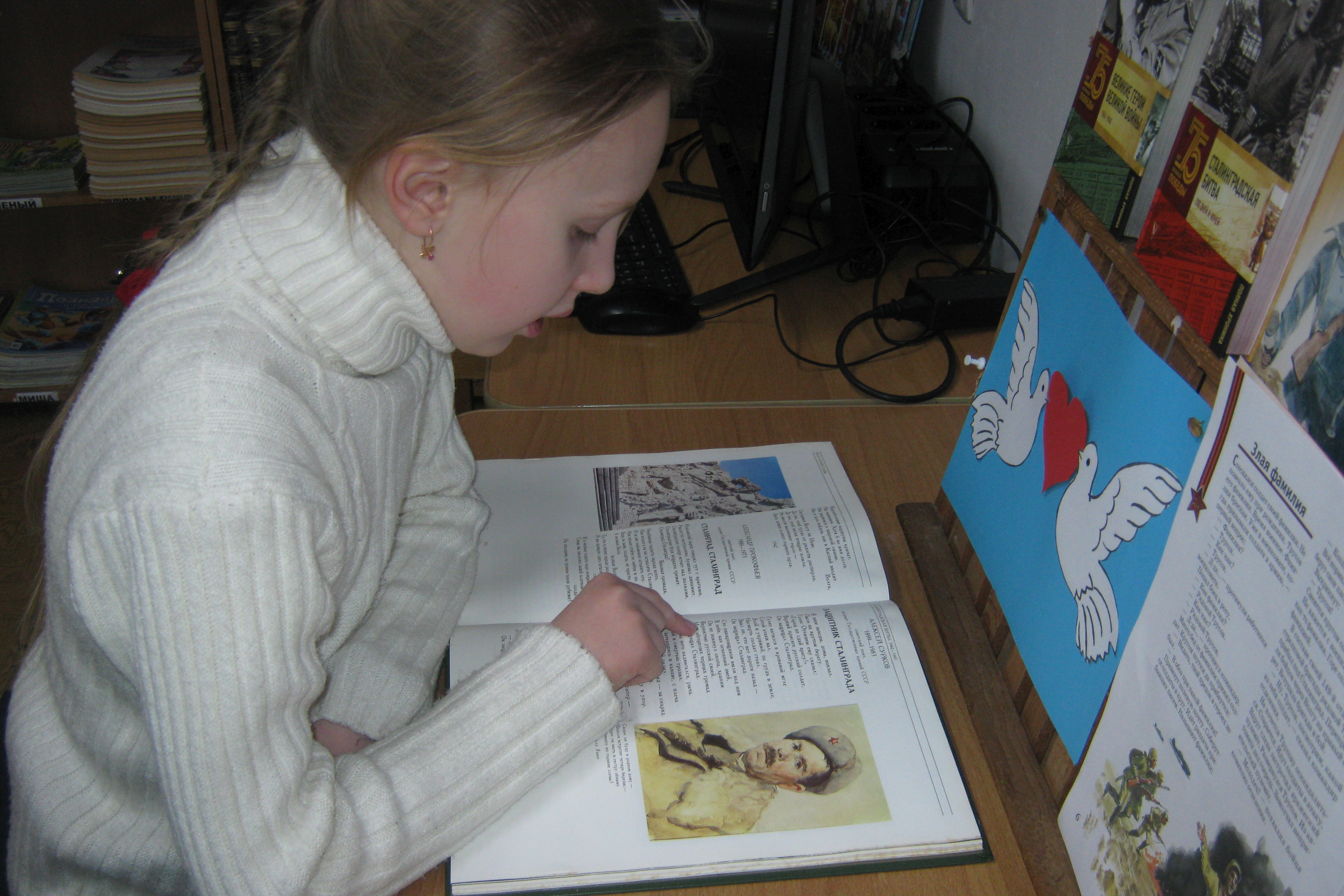 «Несколько дней назад мы с подружкой пришли в библиотеку №15, поменять книгу, а попали на мероприятие, посвященное Сталинградской битве. Было очень интересно услышать о подвигах наших воинов в этом сражении. Мы узнали о снайпере Зайцеве, о доме Павлова, о безымянной высоте, которая из рук в руки переходила 10 раз!