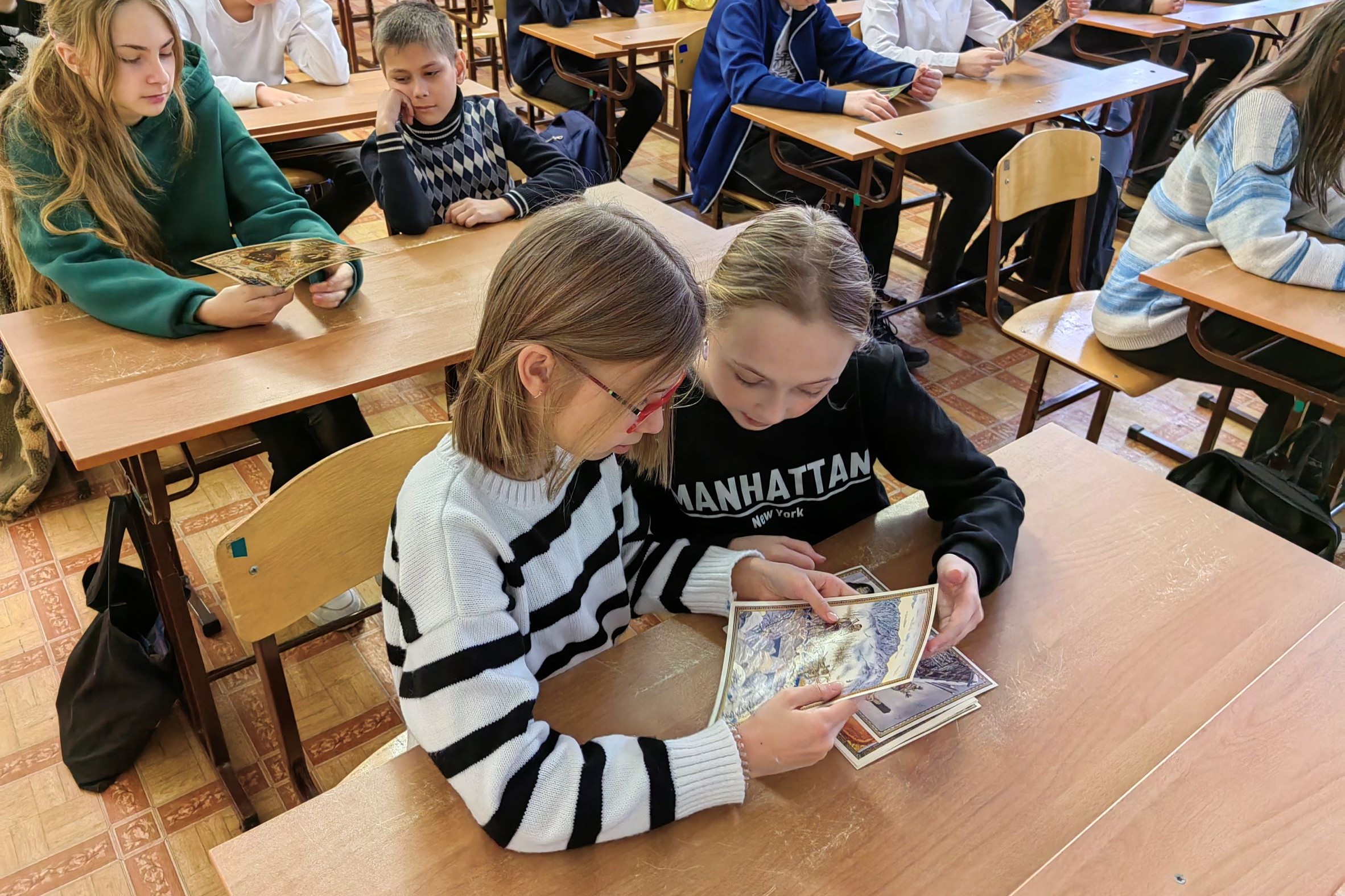 В течение встреч использовались карточки с изображениями коренных народов авторства Геннадия Павлишина, которые школьники просматривали, наглядная презентация фотографиями из музеев и архивов, а также иллюстрации книг «Охотник Егдига из страны Удэге», «Сказки удэгейской тайги» Владимира Подмаскина и Ирины Киреевой и сборника «Таежные сказки».