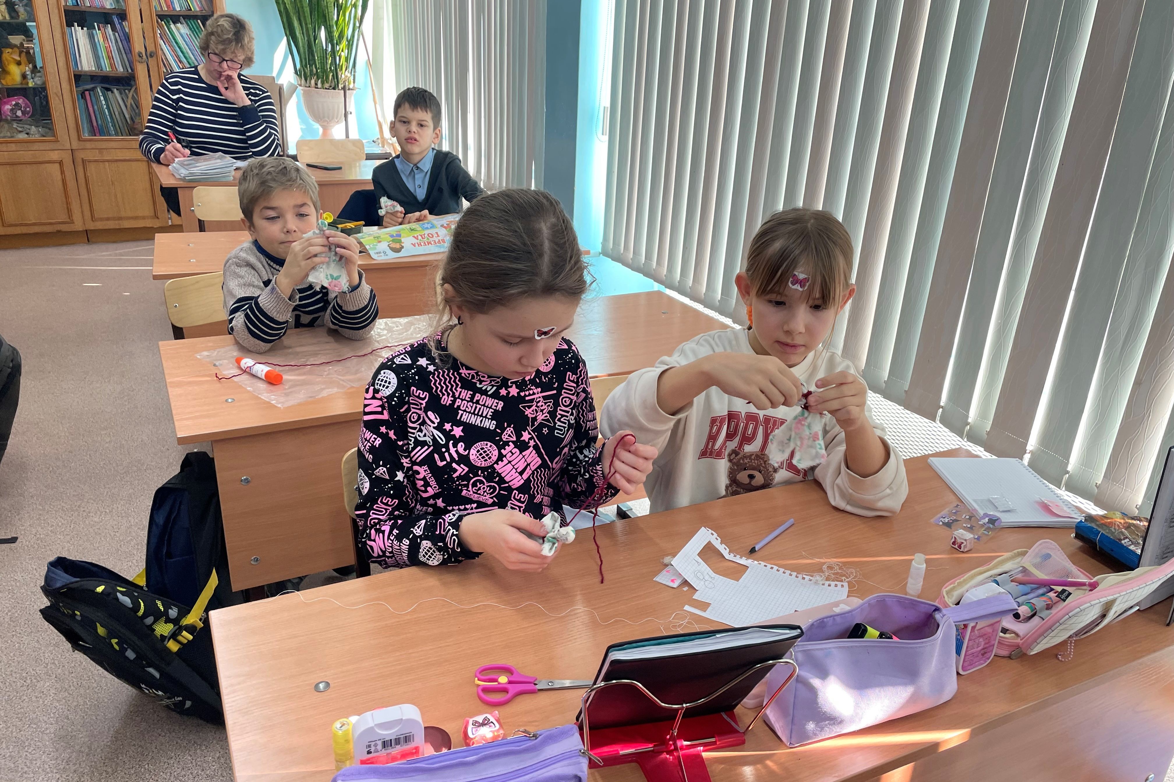 31 января ученики 3 «А» класса школы № 59 под руководством сотрудников Детской библиотеки №7 учились мастерить тряпичную куклу. Такие занятия проходят в классе уже не первый раз, дети ждут таких занятий, готовятся к ним. На этот раз они мастерили куколку под названием «отдарок-на-подарок», но вначале послушали интересные истории из книги Ирины Колпаковой «Возвращение мудрости предков» и книги серии «Настя и Никита» «Русская изба. От печки до лавочки».