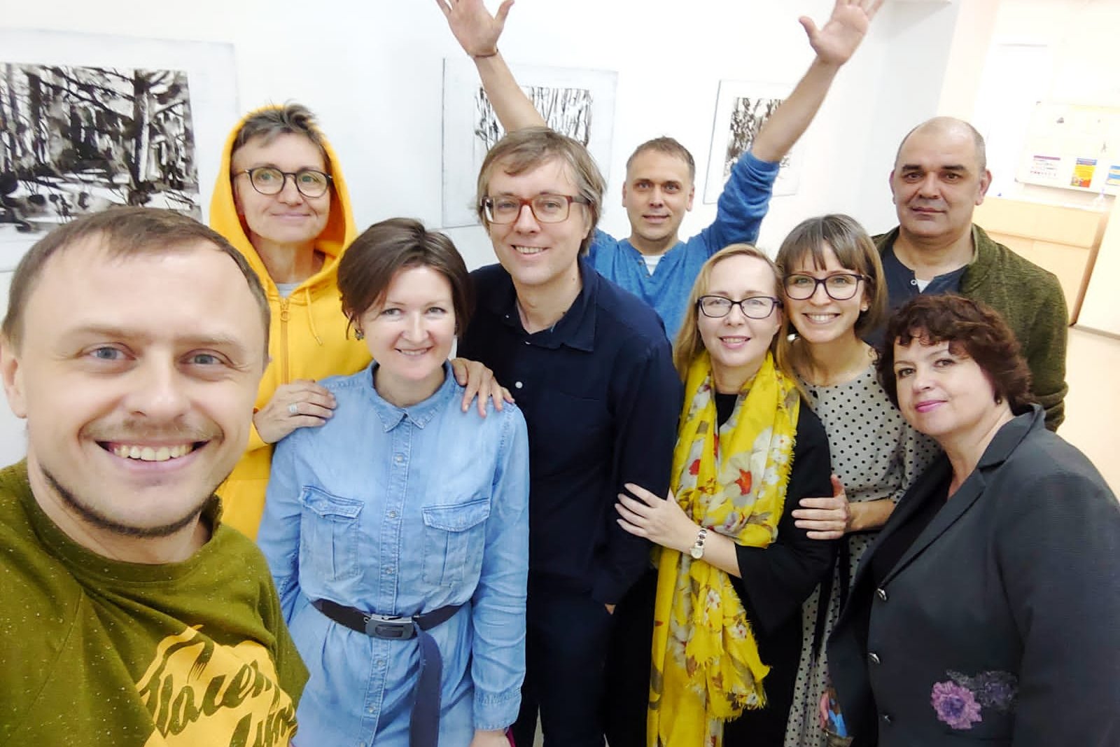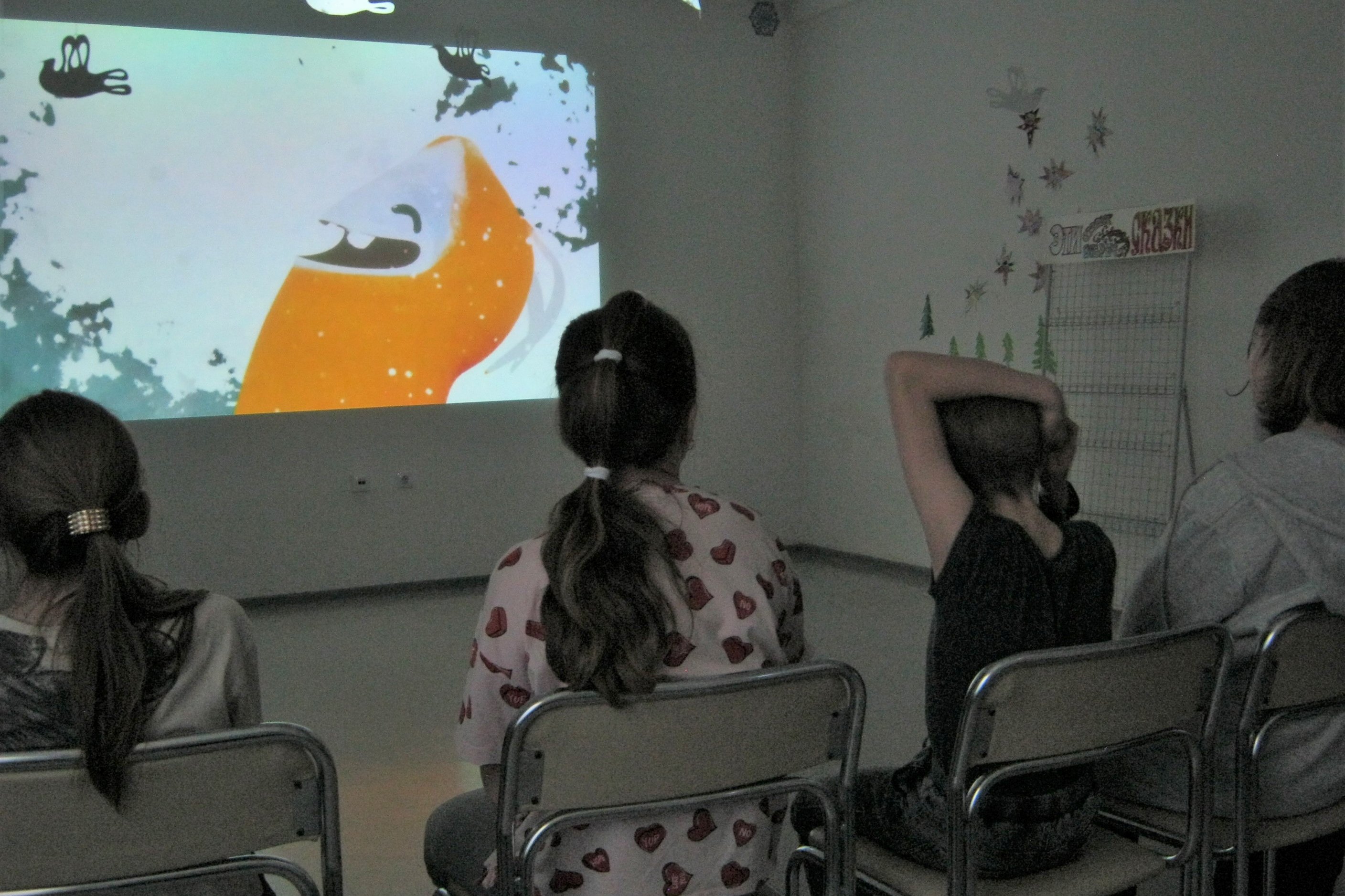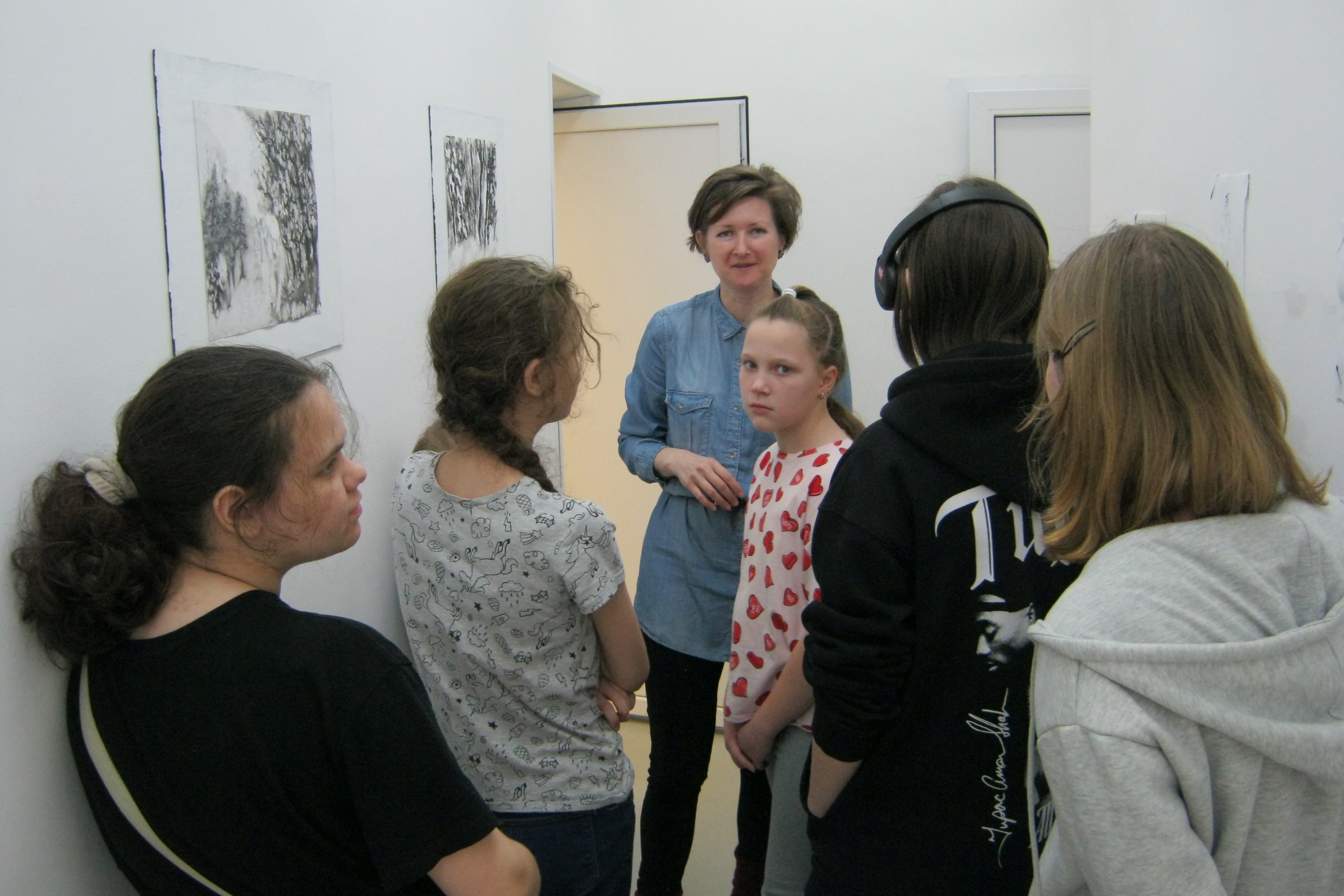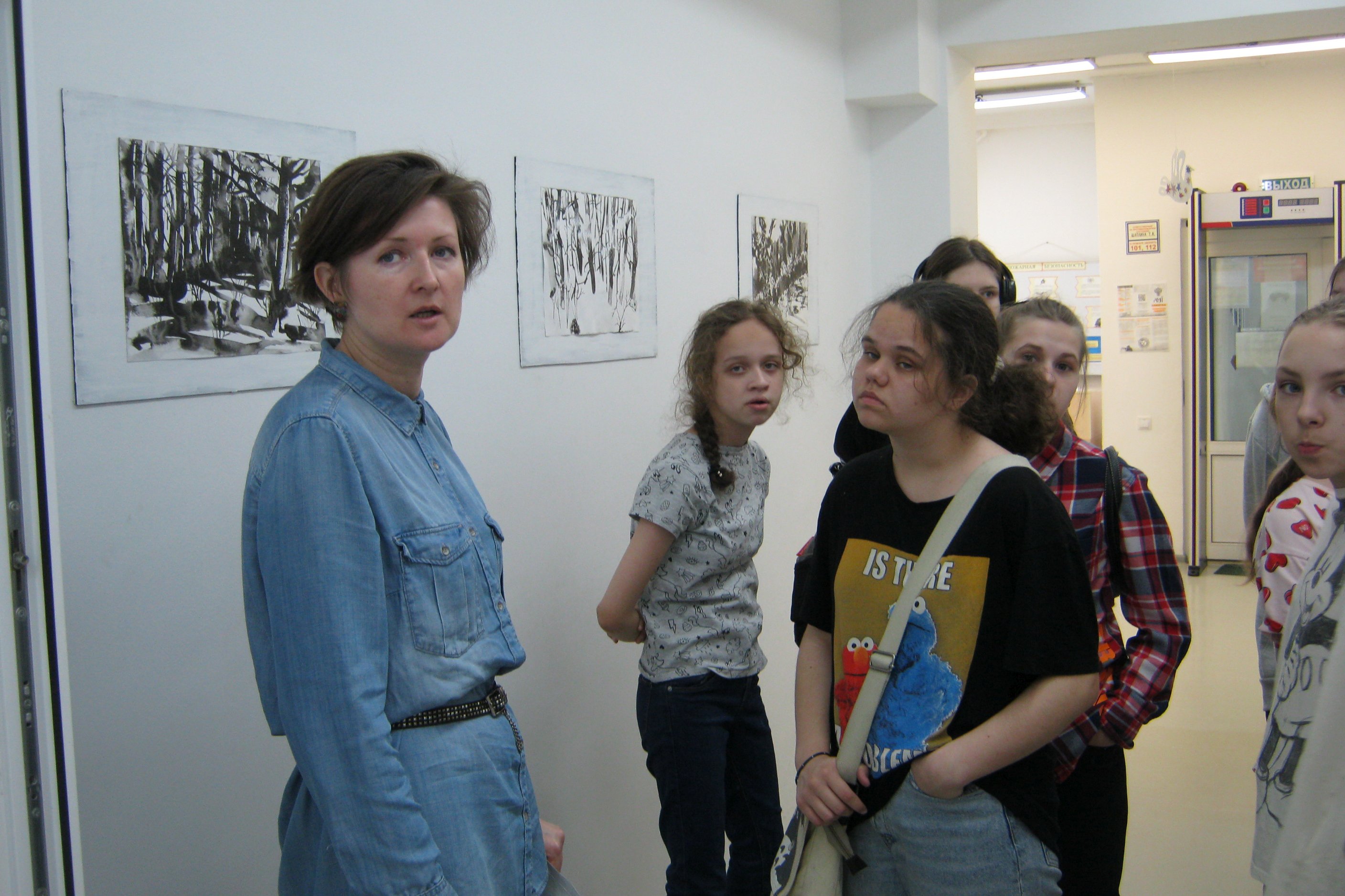Так как работы выполнены в разных техниках, подростки из ЦРТДиЮ, разглядывая выставку, попробовали сами угадать, где тушь, где акварель, а где уголь. Даже попробовали предположить, для чего автор посыпал свои работы солью и где использовал белую тушь. Выяснилось, что кому-то лаконичная черно-белая графика по душе, а кому-то кажется скучноватой, но в этом нет ничего предосудительного для художников, у каждого свой темперамент и свои предпочтения в выразительных средствах. Зато студийцы из ЦРТДиЮ сошлись во мнениях, что зимние дни на пейзажах разные: где-то теплая и влажная погода, а где-то солнечная и морозная. Выяснилось также, что группа «Аквариум» вполне знакома кому-то из подростков, посетивших выставку, видимо, родители слушают такую музыку. Дело в том, что название выставки – это чуть измененное название песни Бориса Гребенщикова. После знакомства с зимними пейзажами, студийцы остались посмотреть зимнюю историю — анимацию «The silence beneath the bark» режиссера из Великобритании Джоанны Лурье.