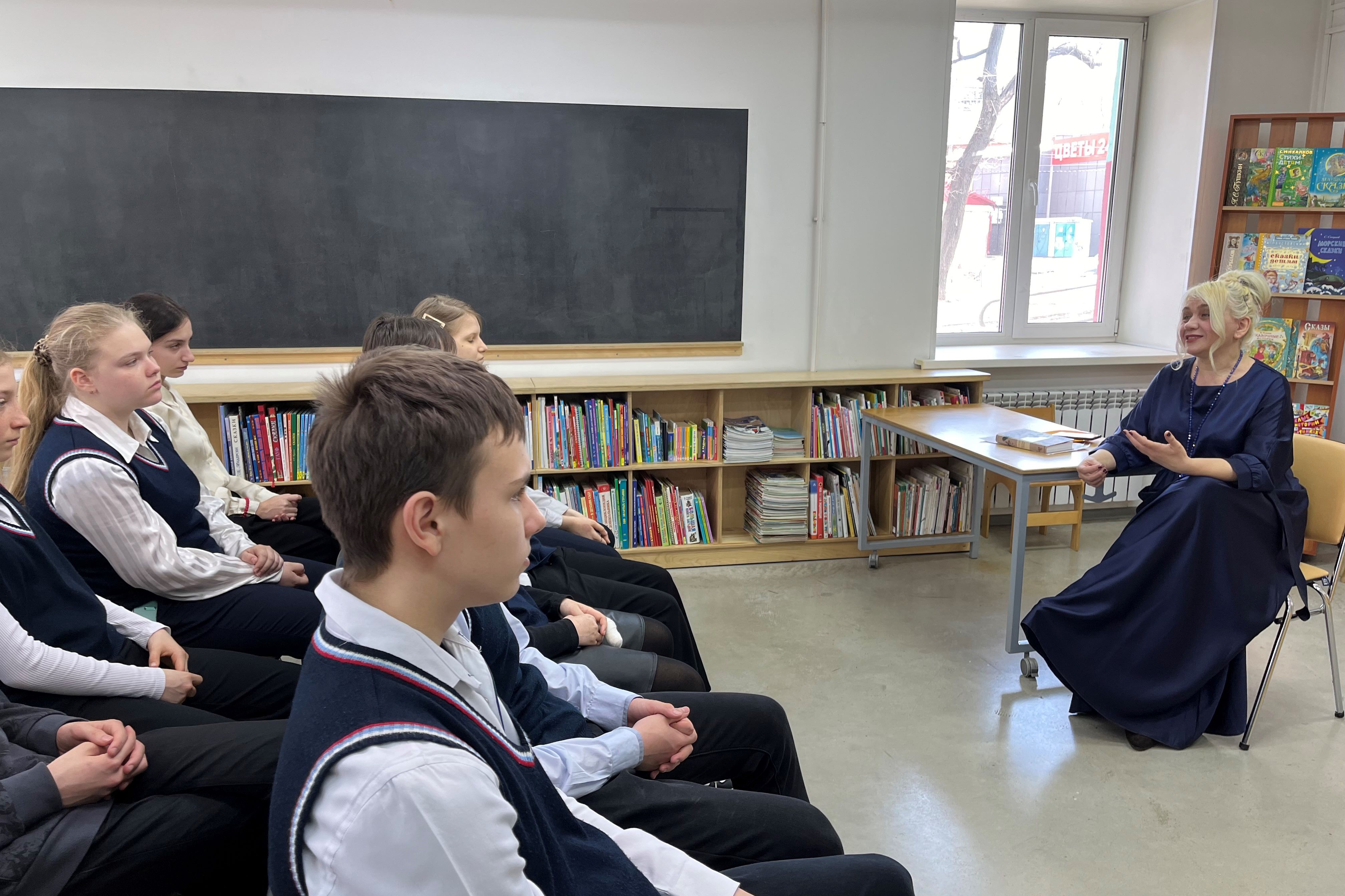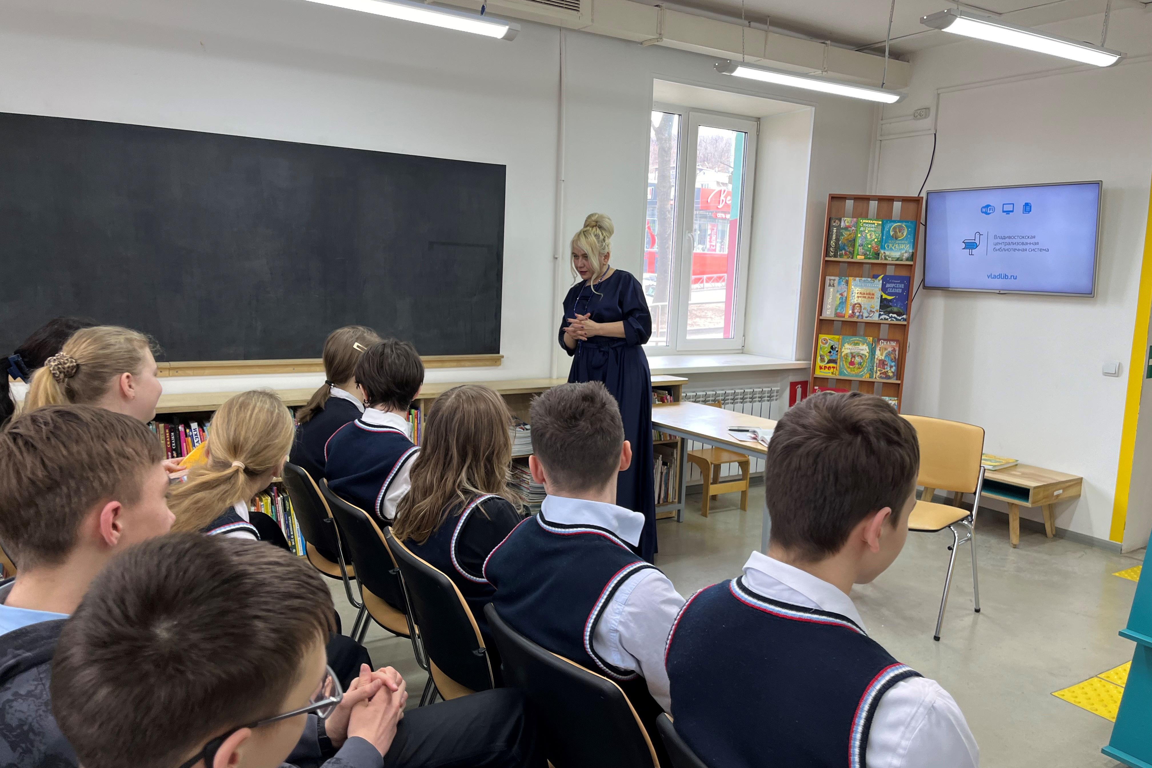 В рамках проекта «Эрудит» 4 апреля в детской библиотеке № 5 восьмиклассники школы № 6 встретились с актрисой Приморской краевой филармонии Аэлитой Степановой, которая познакомила подростков с профессией актера.