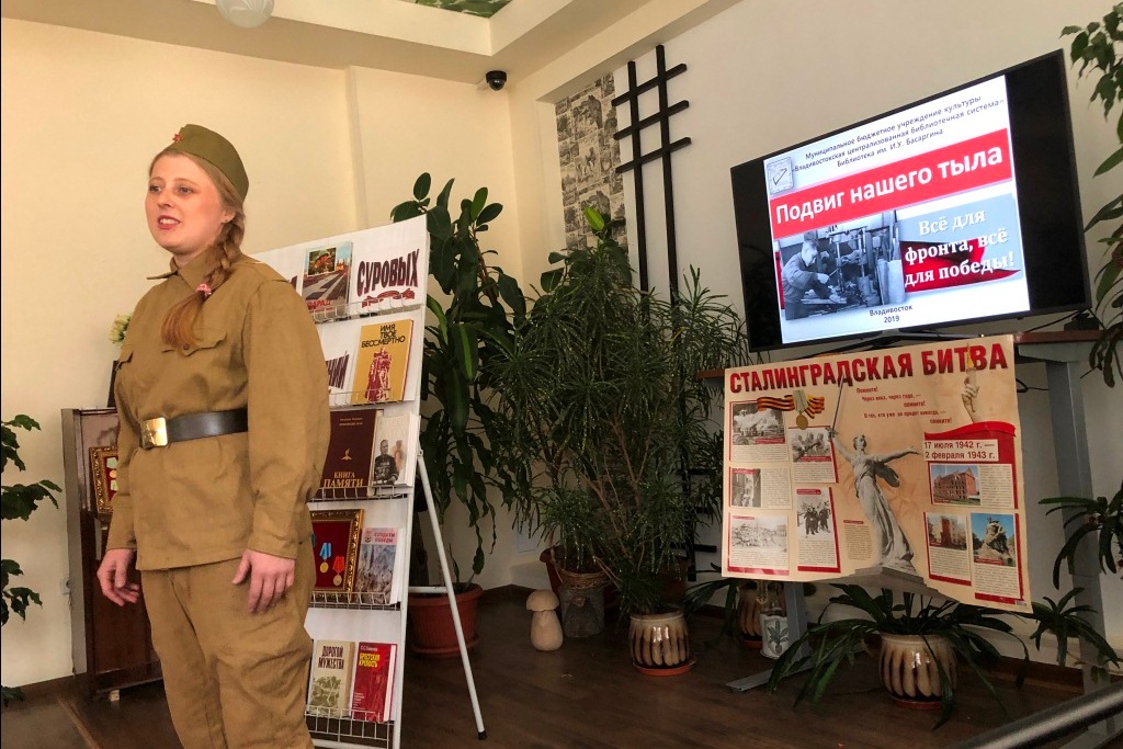 5 мая в канун праздника Дня Победы к 9 мая в библиотеке им. И.У. Басаргина, состоялась литературно-музыкальная композиция «Войной испепелённые года» по программе книжной гостиной «Траектория чтения» в рамках проекта «Библиотека для семьи». Мероприятие было подготовлено совместно с Приморским региональным отделением Союза машиностроителей России в лице его представителя – главного редактора газеты «Прогресс Приморья» Сергеем Михайловичем Юдинцевым.