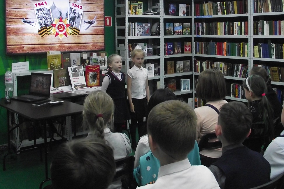 7 мая первоклассники школы № 64 в библиотеке им. И.У. Басаргина познакомились с юными героями Великой отечественной войны 1941-1945гг.: Борей Кулешиным, Аркашей Каманиным, Леней Голиковым, Валей Зенкиной, Володей Дубининым. Они сражались рядом со старшими – отцами и братьями. На их хрупкие плечи легла тяжесть невзгод, бедствий, горя военных лет. За мужество и отвагу все они удостоены звания Героя Советского Союза. На громком чтении дети с выражением читали книгу «Час мужества» со стихами и рассказами о войне.