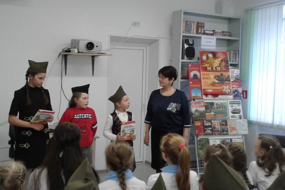 5 мая на занятие творческой студии «Капель» в библиотеке №13 дети приняли участие в постановке мини-спектакля «Битва под Сталинградом». Они выступили в роли актеров в импровизированных диалогах на заданную тему, учились выражать свои мысли, описывая картины из книги «Подвигу 40 лет», поиграли в ассоциации «мир-война», спели караоке-песню «Три танкиста» и познакомились с тематической выставкой книг «Военная поэзия».