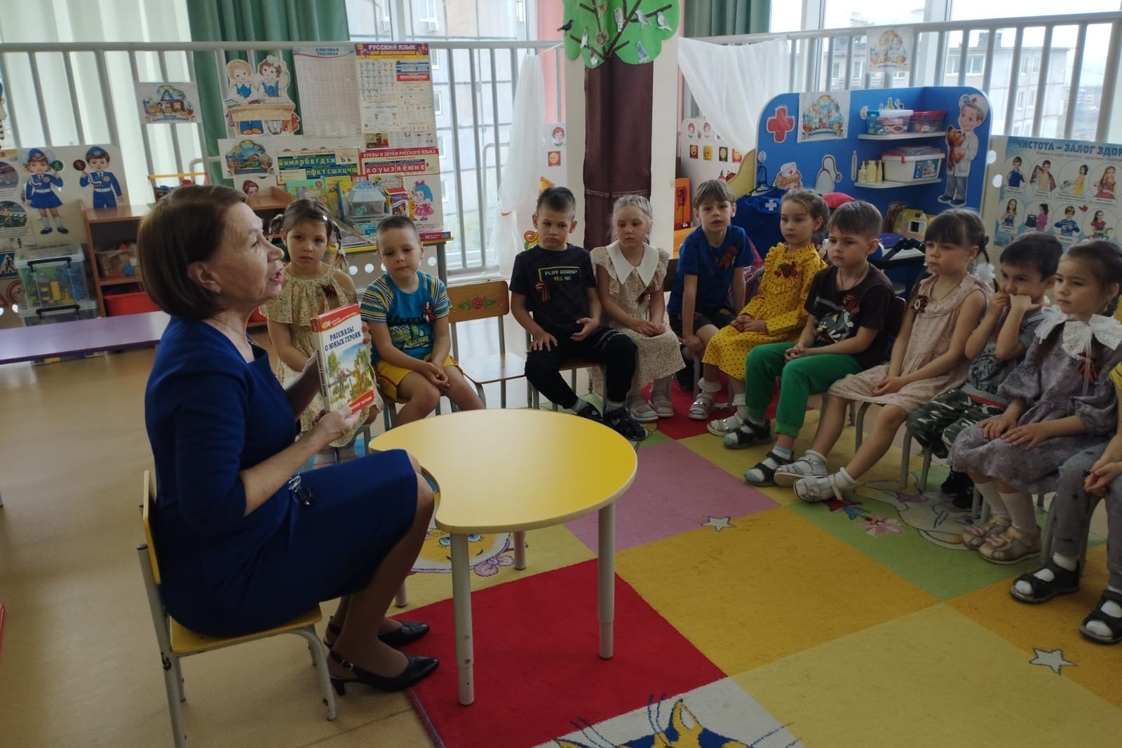 Для воспитанников подготовительной группы МБДОУ № 41 библиотека № 13 организовала 5 мая громкое чтение рассказа Сергея Алексеева «Оксанка». Дети внимательно слушали произведение о тяготах людей в годы войны. На детей огромное впечатление произвела история о маленькой девочке, державшей патрон в руках. Этот момент особенно запомнился — дети наравне со взрослыми приближали победу в Великой Отечественной войне. Воспитанники сопереживали героям произведения, помогавшим солдатам в период распутицы. После знакомства с рассказом Алексеева прошла тематическая викторина. Воспитанники дружно тянули руки и бойко отвечали на вопросы.