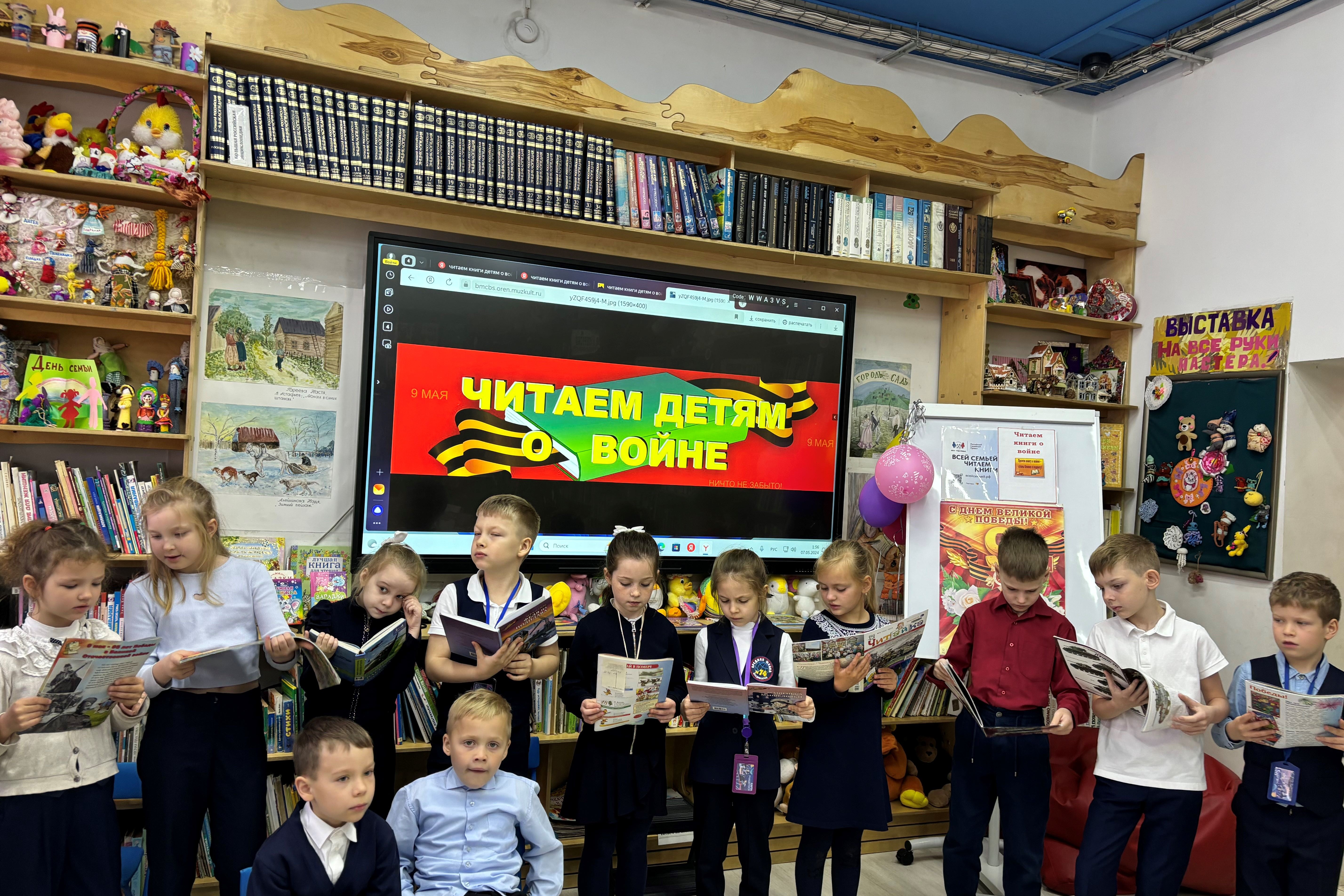 7 мая ученики 1 «Д» класса школы №74 приняли активное участие в акции в детской библиотеке №7 и с большим интересом слушали рассказы о войне. Школьникам очень полюбились замечательные рассказы известного детского писателя, участника Великой Отечественной войны Сергея Петровича Алексеева. Они слушали его рассказ «Как «катюша» «катюшей стала». Дети прекрасно знали, что «катюши» – это реактивные минометные установки, и им понравилось такое ее такое простое имя. Даже вспомнили песню про «катюшу» и немного спели ее. А еще внимательно слушали рассказ Раисы Куликовой «Военный карандаш». Так этот рассказ тронул их душу! Многие потом рассказывали про своих прадедов, которые воевали, про то, что они знают о Великой Отечественной войне. Мальчик Артем увлеченно рассказывал про символ победы – танк Т-34, который прошел всю войну от первого ее дня и до последнего и говорил, что он сам видел этот танк. Потом читали стихи про войну, выбрав себе понравившуюся книгу и журнал, а девочка Алисия торжественно прочитала стихотворение «День Победы» Тимофея Белозерова наизусть, с выражением и чувством гордости.
