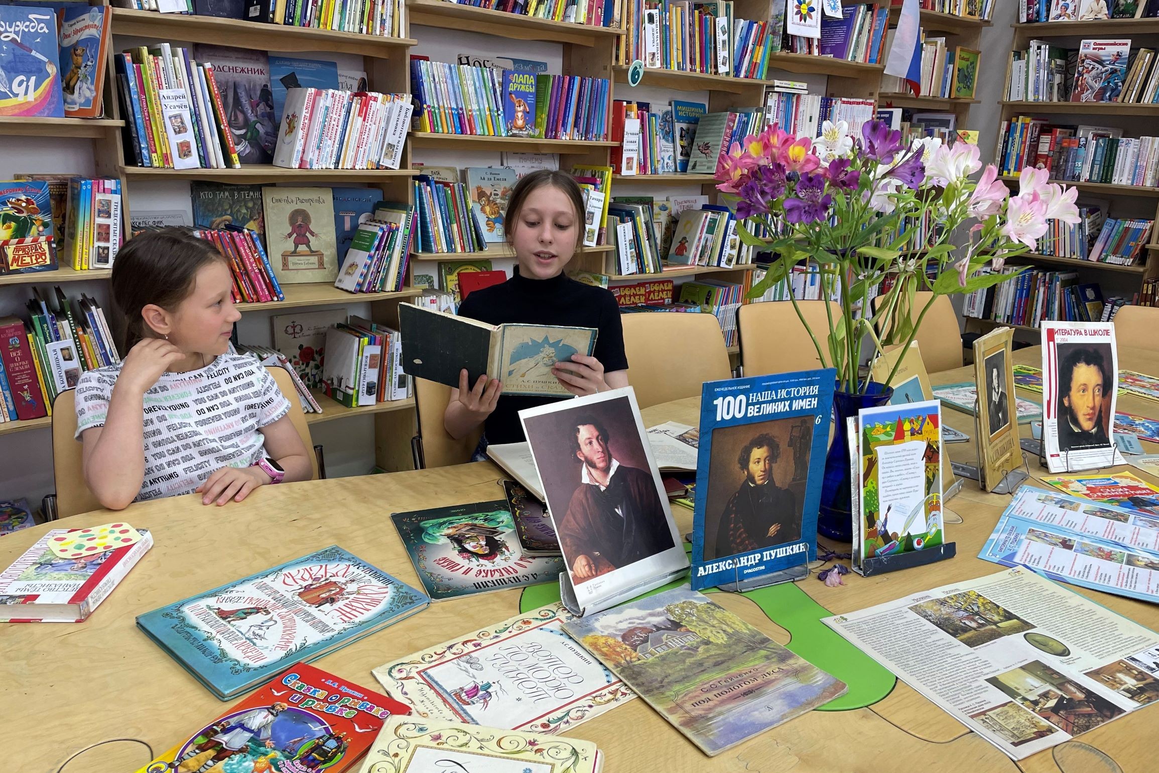 6 июня в библиотеке № 21 читателей встречала яркая книжная выставка с произведениями поэта, всем известными со школьной скамьи. Помимо этого библиотекарями были организованы громкие чтения самых популярных отрывков сказок и поэм. Все читатели: и младшие школьники, и подростки, и посетители постарше с улыбкой поучаствовали в чтениях, громко и с выражением зачитывая вместе с сотрудниками библиотеки свои любимые стихотворения.