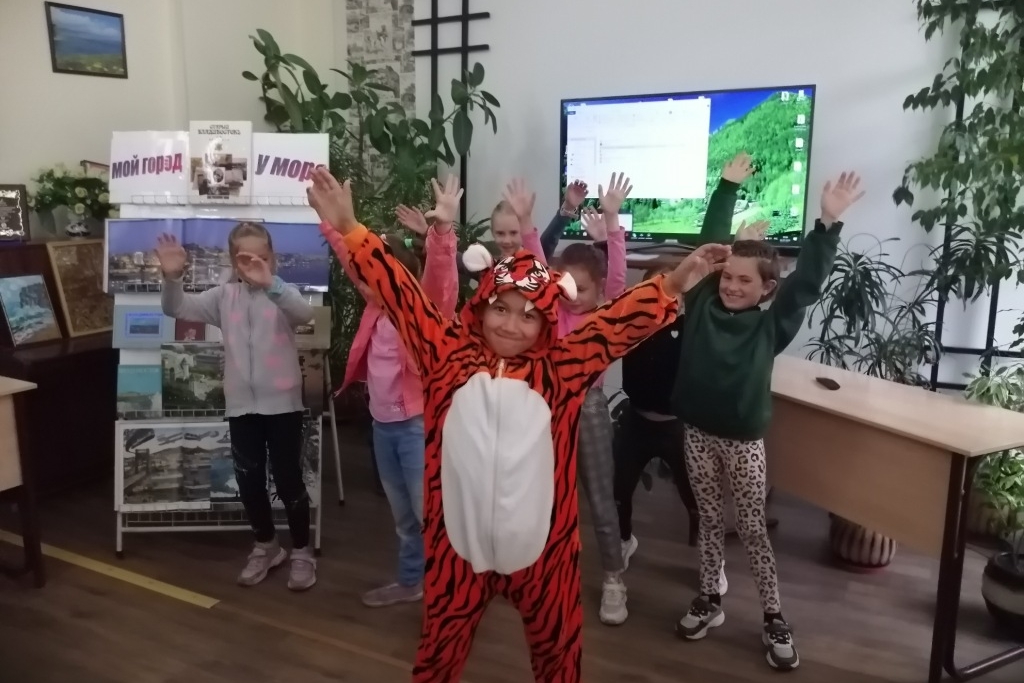 В гости в библиотеку пришёл тигрёнок в исполнении Улугбека Туракулова. Он сообщил, что потерял свой волшебный ключ, с помощью которого можно было обойти свои владения. Ведь здесь раньше тоже была тайга. Ребята предлагают помощь так начинается игра «Назови улицу». Далее тигрёнку и всем присутствующим была предложена электронная презентация «Памятные места нашего города». При последующем опросе оказалось, что многим ребятам эти места знакомы (ж/д вокзал, скульптурная композиция «За власть Советов», Арка, цирк, океанариум, к/театр «Океан», ботанический сад и многие другие уголки родного Владивостока.