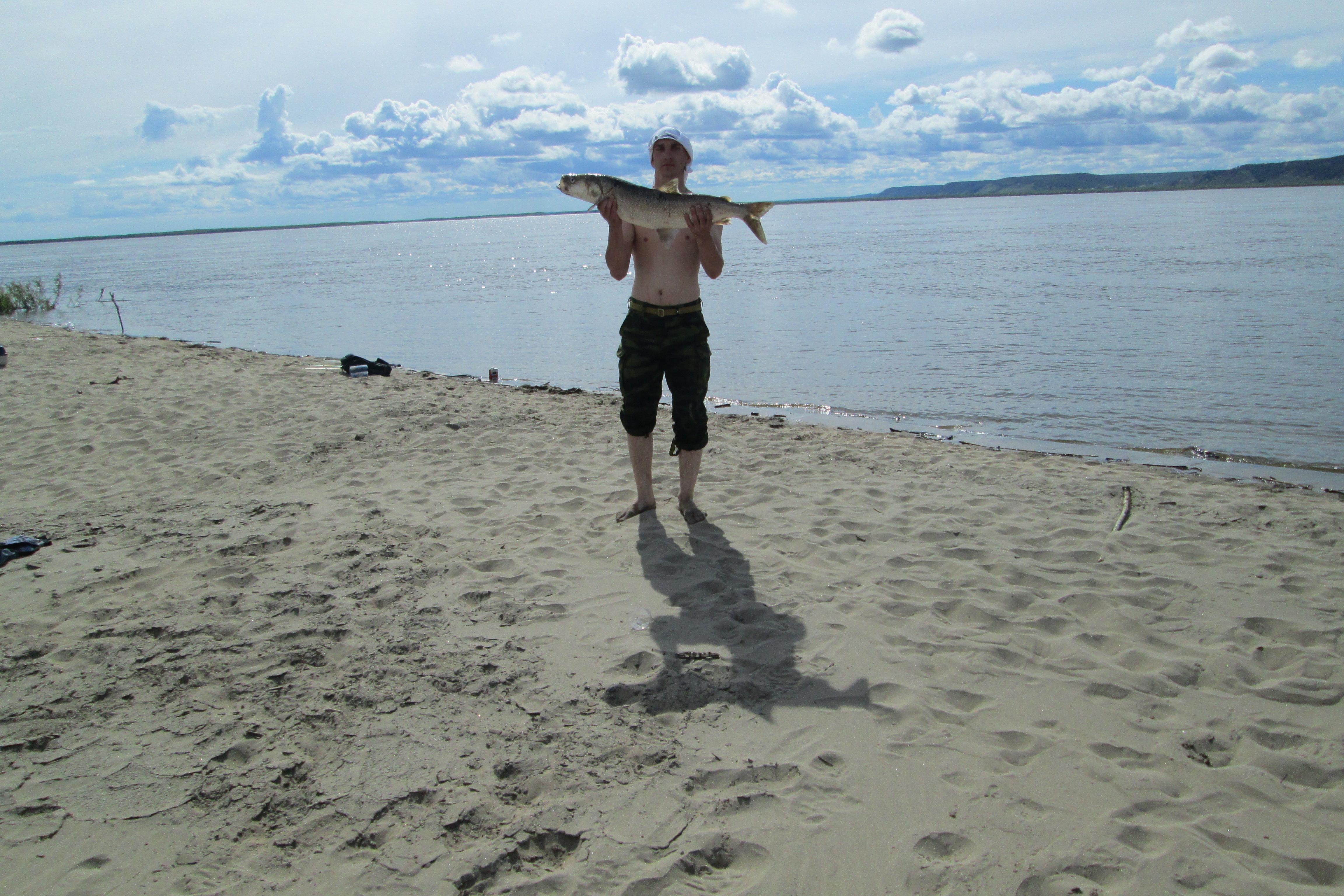 А еще река Лена богата нельмой и чиром. Нельма – это довольно крупная рыба с белым сочным и жирным мясом, достигающая в длину до 1,5 м, а весом может быть до 50 кг. Но средний вес нельмы 5 – 10 кг. Именно такую не очень крупную рыбину, килограмм на 10, мы поймали на «песках» — небольших песчаных островках посередине реки. Нельму и чира местные жители обычно замораживают и затем едят строганину – нарезанную стружкой замороженную рыбу, которую обмакивают с смесь соли и черного перца. Икру нельмы солят, она имеет желтый оттенок и ценится почти так же, как черная осетровая.