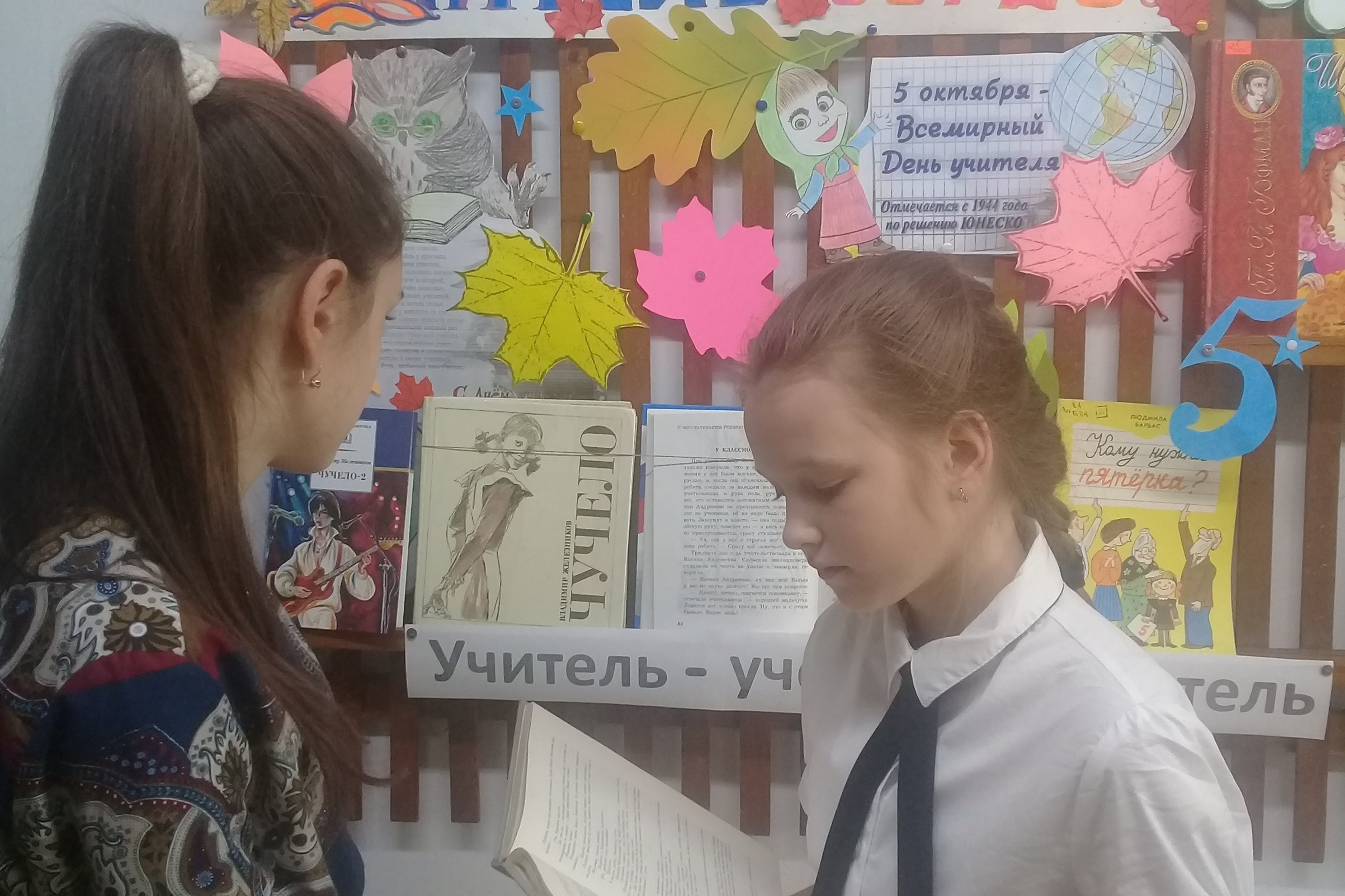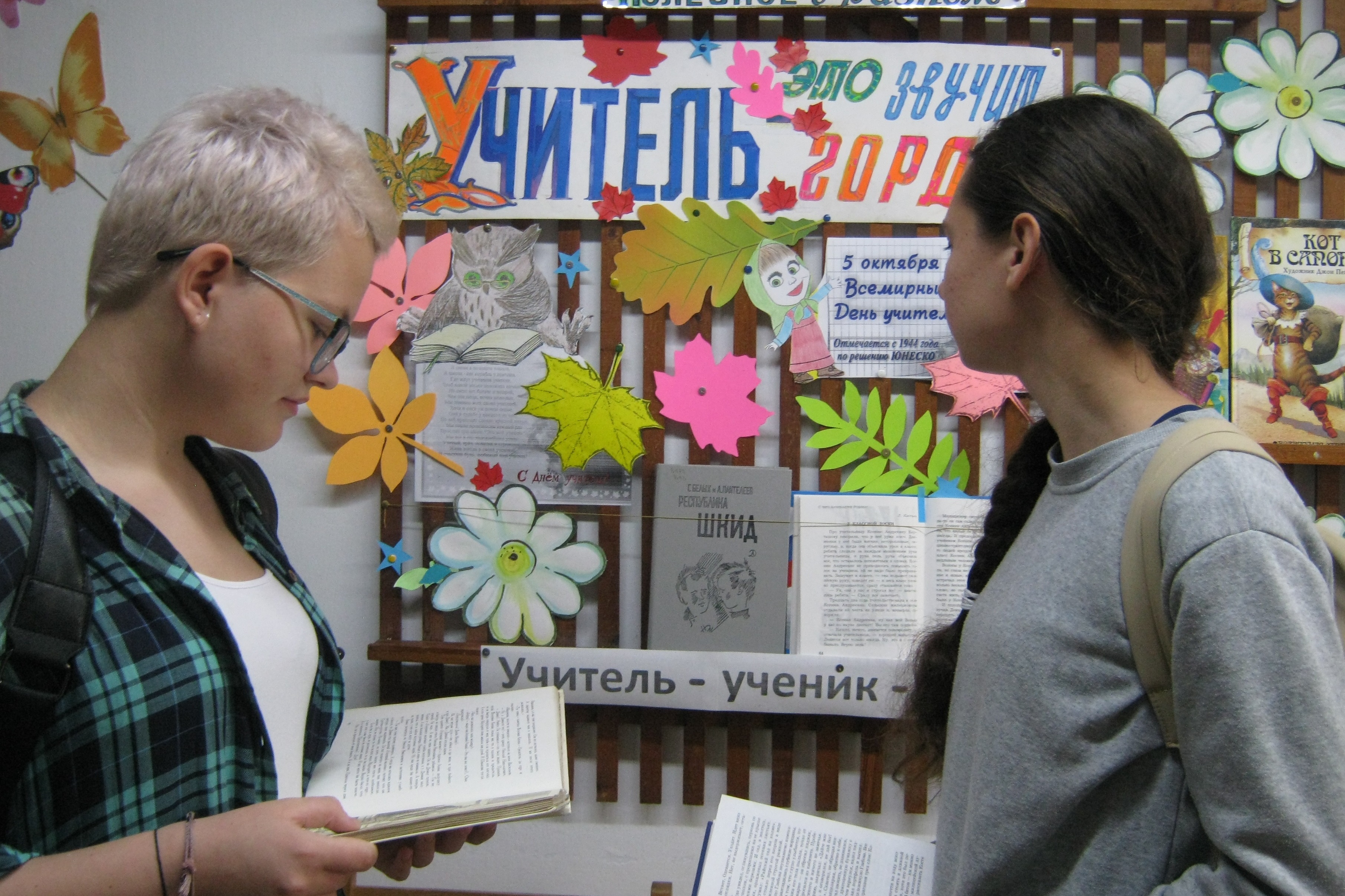 В библиотеке №15 была подготовлена выставка-обзор «Учитель, ученик, родитель». Вниманию читателей были представлены книги об учителях и их благородном труде. Это и повести «Республика ШКИД» (Г. Белых и Л. Пантелеев), «Уроки французского» (В. Распутин), «Чучело» (В. Железняков), рассказ «У классной доски» (Л. Кассиль) и многие другие.