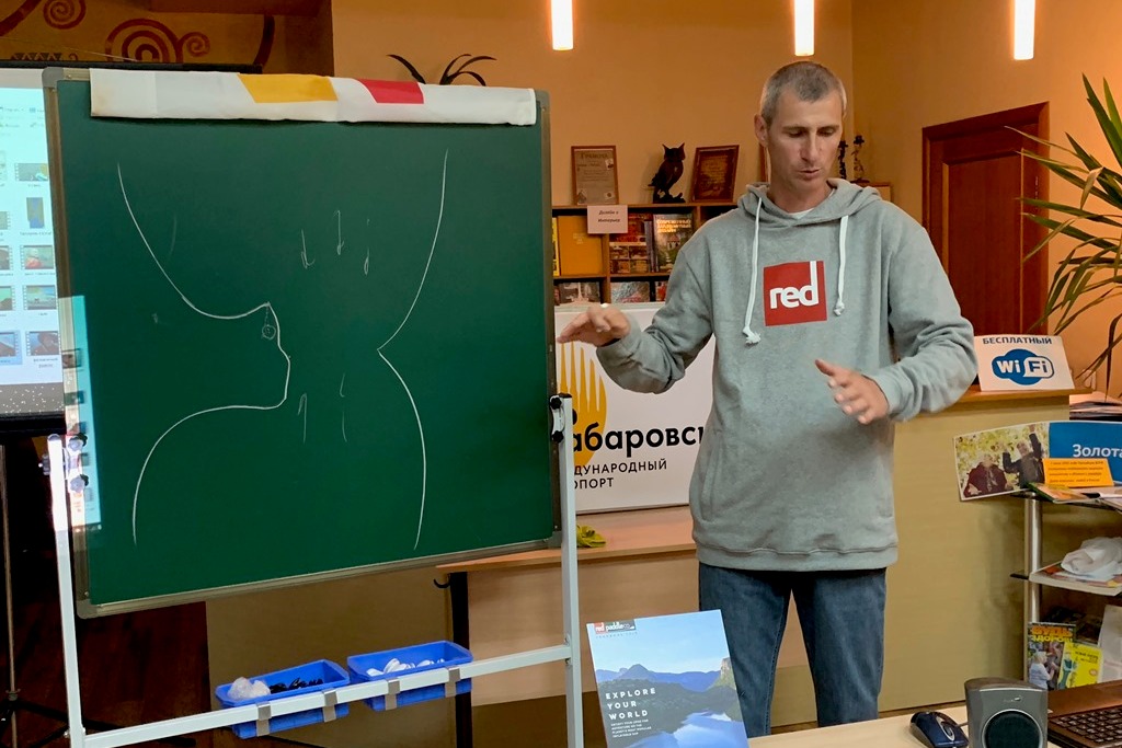 5 октября в Центральной библиотеке им. А.П. Чехова прошла встреча с Максимом Харченко, путешественником, членом Приморского краевого отделения Русского географического общества, совершившим «SUP-экспедицию по следам адмирала Невельского».