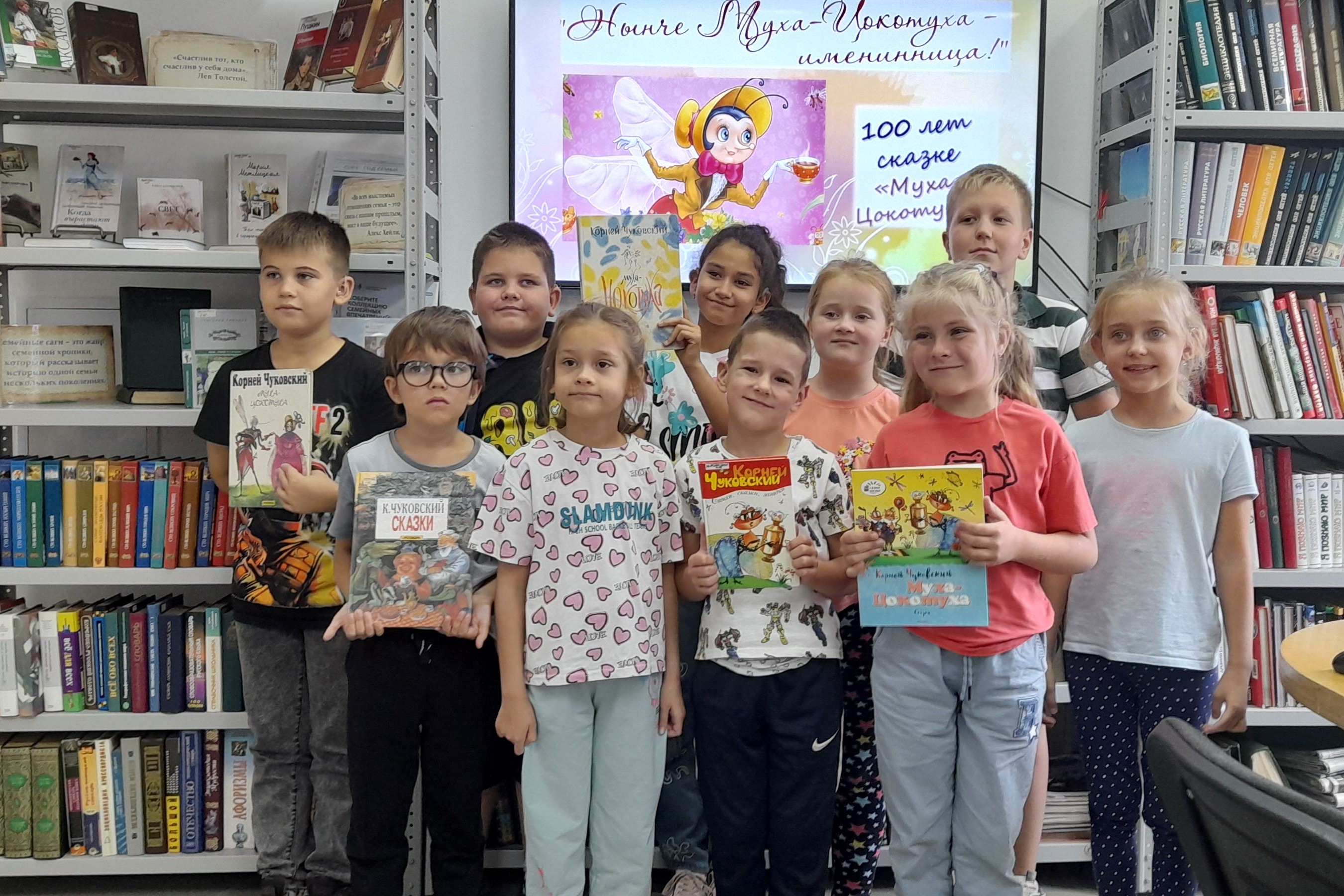 К вековому юбилею знаменитой сказки К.И. Чуковского «Муха – Цокотуха» сотрудниками библиотеки 16 была подготовлена электронная презентация «Нынче Муха-Цокотуха именинница», из которой ребята узнали историю написания сказки, ее литературную судьбу – от гонения и осуждения цензорами, до любви ребят. О том, как сказка про Муху – Цокотуху стала любимым произведением ребятишек всех поколений и имеет огромную творческую «карьеру»: ее четыре раза экранизировали, начиная с 1941 года, когда сценаристом сказки стал В. Сутеев, до того, как эта сказка стала фрагментом мультфильма «Доктор Айболит», 1985 года, режиссера Давида Черкасского, где Бармалей устраивает африканским зверям спектакль, в котором использован полный текст произведения Чуковского.