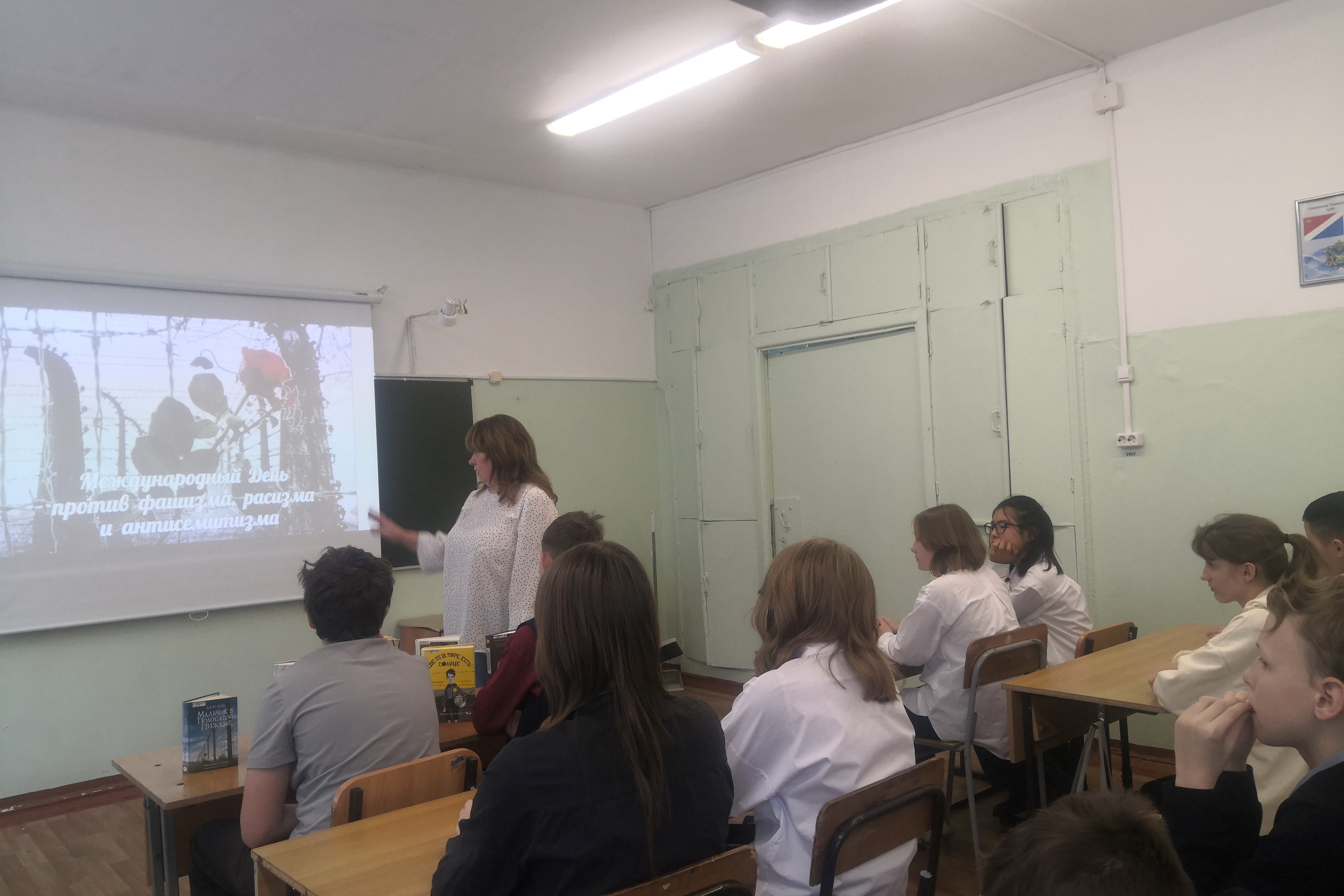 Накануне Международного дня против фашизма, расизма и антисемитизма библиотека № 16 для семиклассников СОШ № 43 организовала Час памяти «Помните, что все это было». С ребятами состоялся разговор о малолетних узниках фашистских концлагерей.